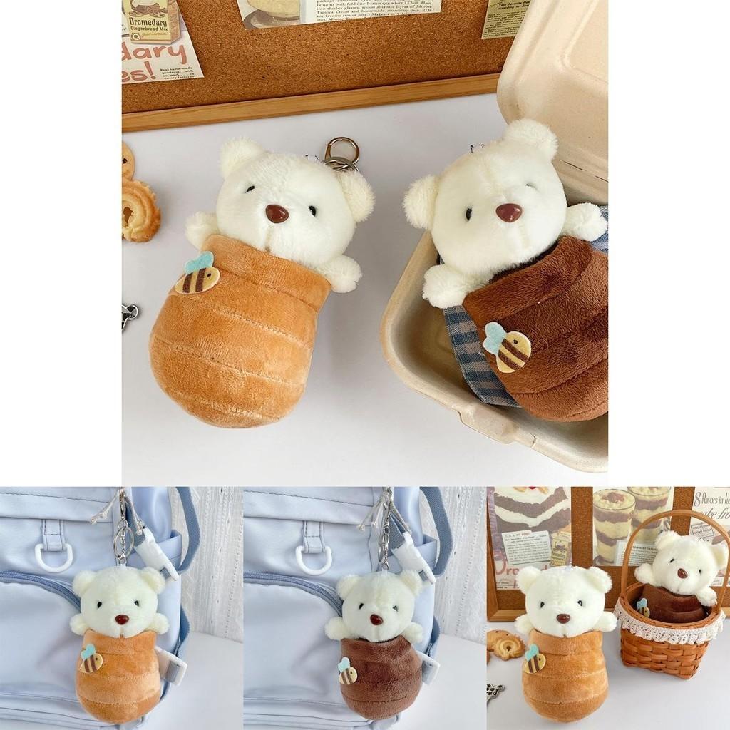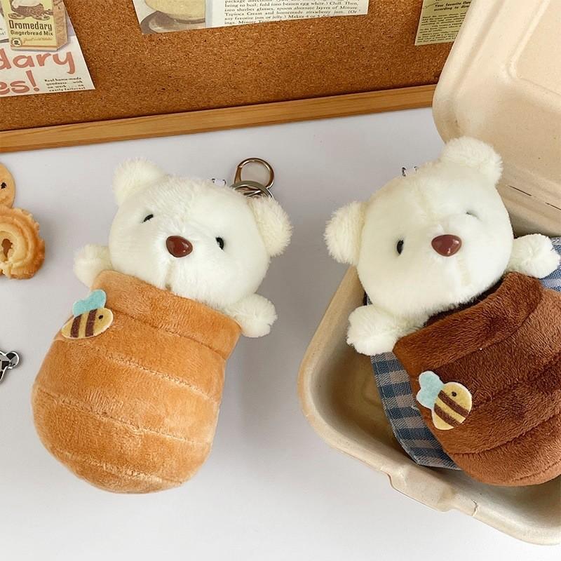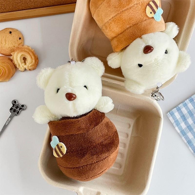 Очаровательный плюшевый брелок в виде мультяшного медвежонка с баночкой меда, короткий плюш, мягкая игрушка