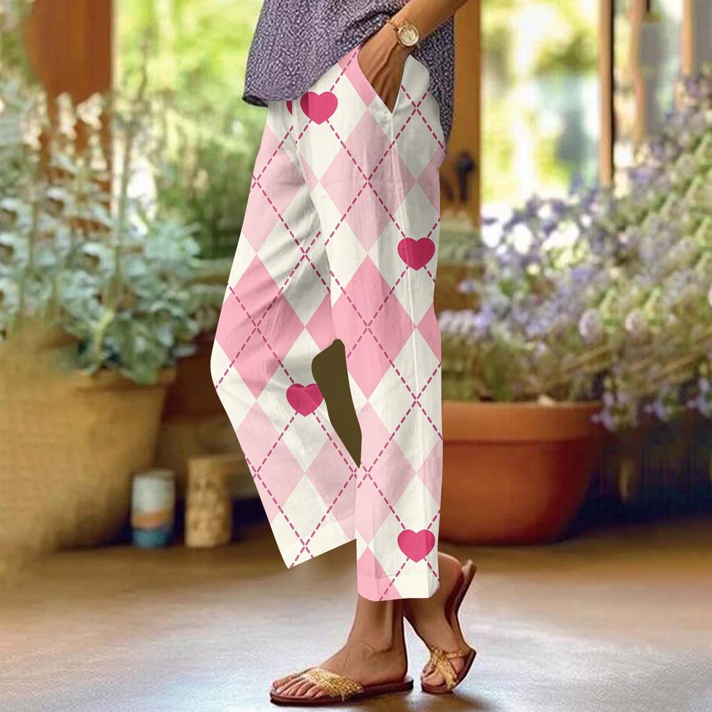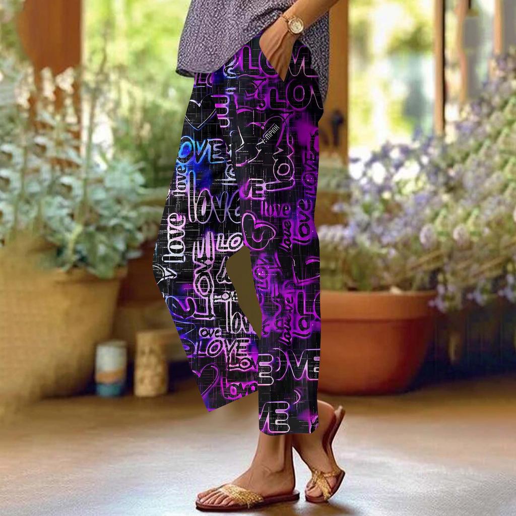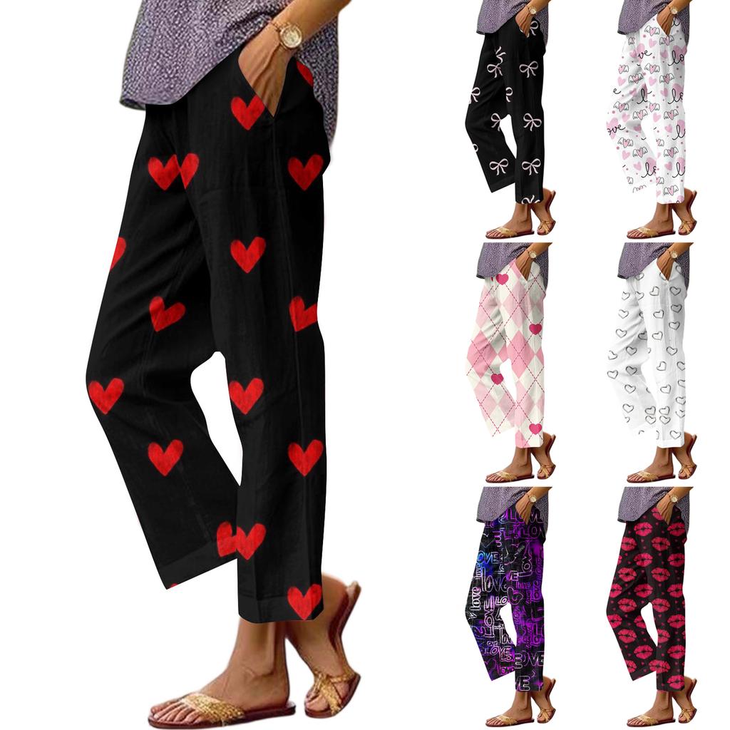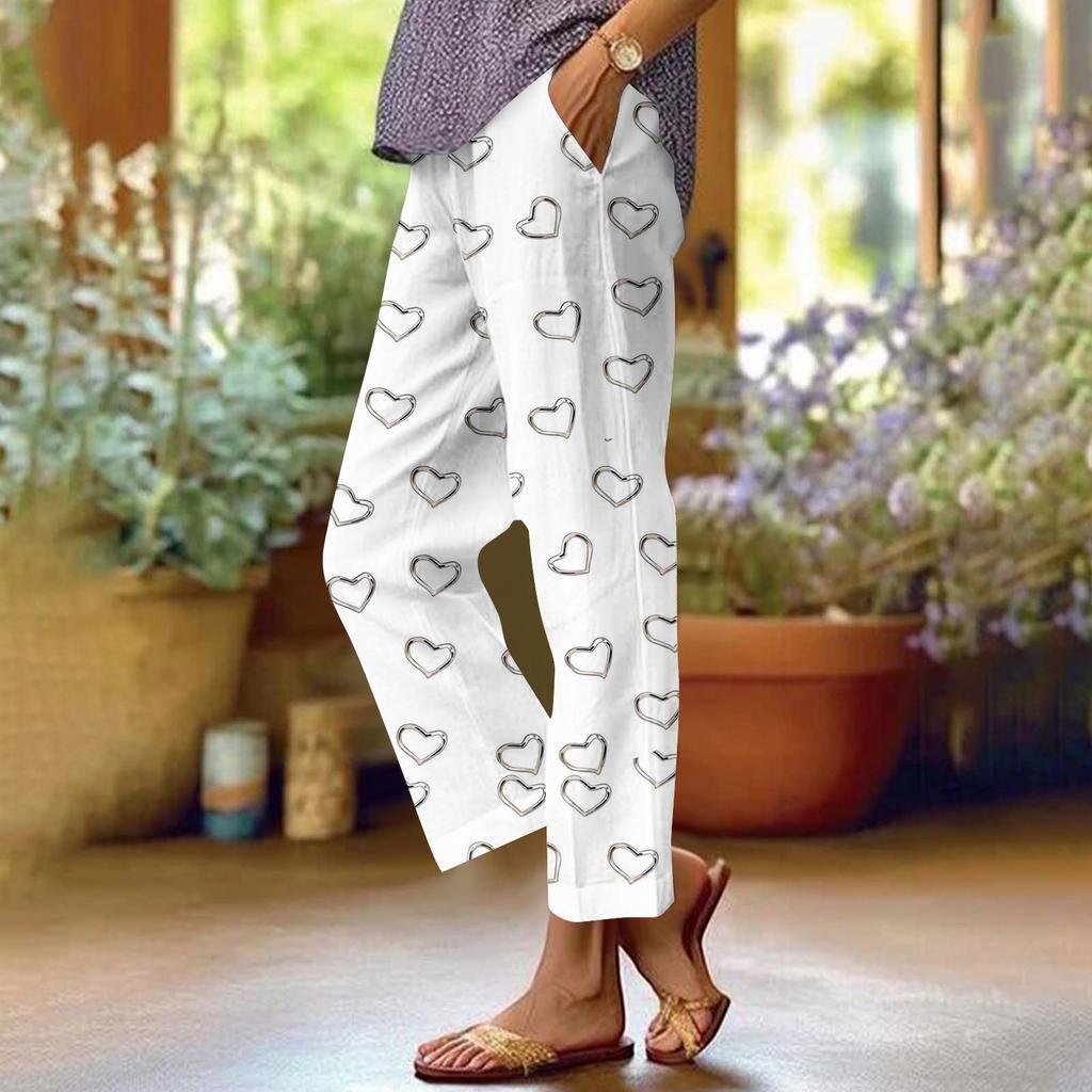 Женские хлопковые льняные брюки с принтом, летние широкие повседневные свободные брюки-палаццо с высокой талией и шнурком, брюки с карманами