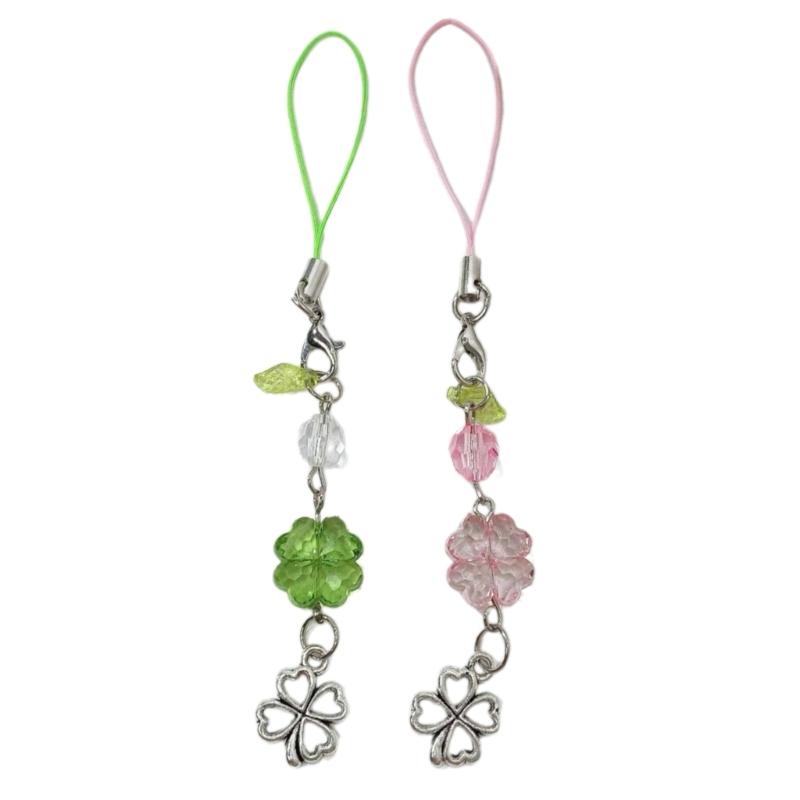 Lucky Clovers Beaded Phone Charm Versatile Lucky Clovers Phone Chain Acrylic Alloy Bead Decors for Bags & Wallets