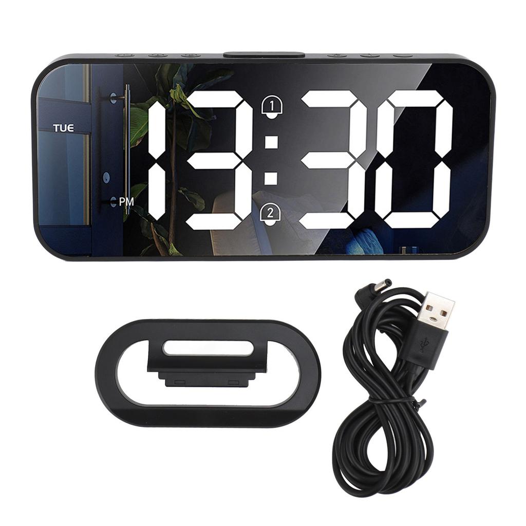 Светодиодное зеркало Электронные часы Регулируемая яркость 6,7-дюймовые HD цифровые будильники для спальни гостиной офиса черный