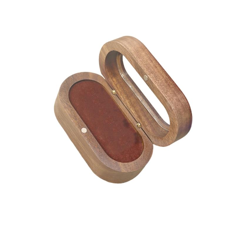 Эта коробочка для колец, изготовленная из акрила с высокой степенью прозрачности, имеет овальный скошенный дизайн и изысканную отделку из черного ореха, которая добавляет очарования любой обстановке.
