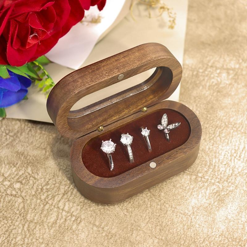 1 шт., коробка для колец из черного ореха с четырьмя слотами