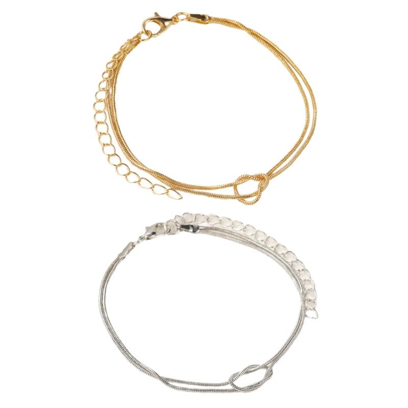 Набор из 2 элегантных браслетов для пар, браслет с узлом, регулируемые украшения на запястье, браслет-цепочка из сплава с текстурой для любого случая