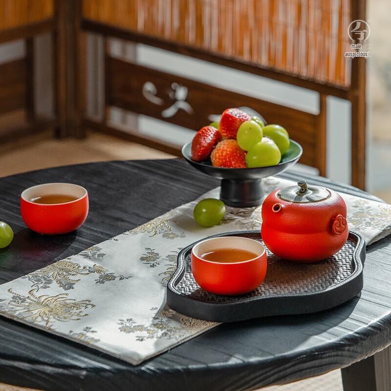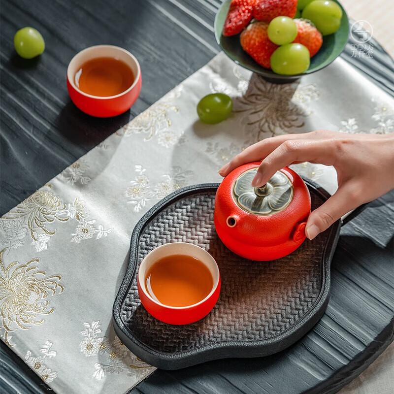 Wanqiantang Cinnabar Glaze Travel Tea Set