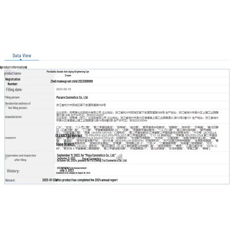 Product (registration/recordation) name: Proya Double Anti-Brightening Eye Cream