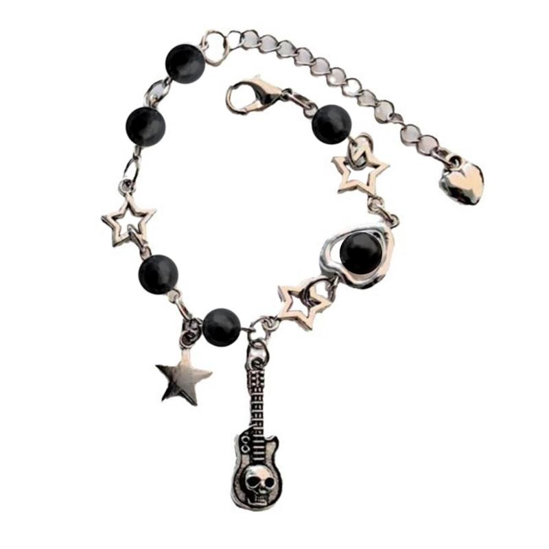Посещаете ли вы вечеринки, концерты или просто занимаетесь своими повседневными делами, этот браслет из бусин в виде сердца, звезды, черепа и гитары улучшит ваш общий вид.