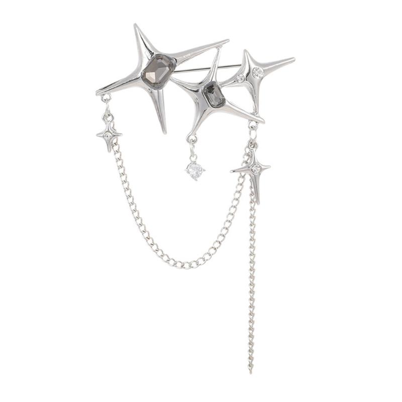 Стильная женская брошь-булавка в виде четырехконечной звезды на цепочке, булавка для блузки, хрустальный значок, ювелирное украшение, индивидуальная панк-брошь для женщин