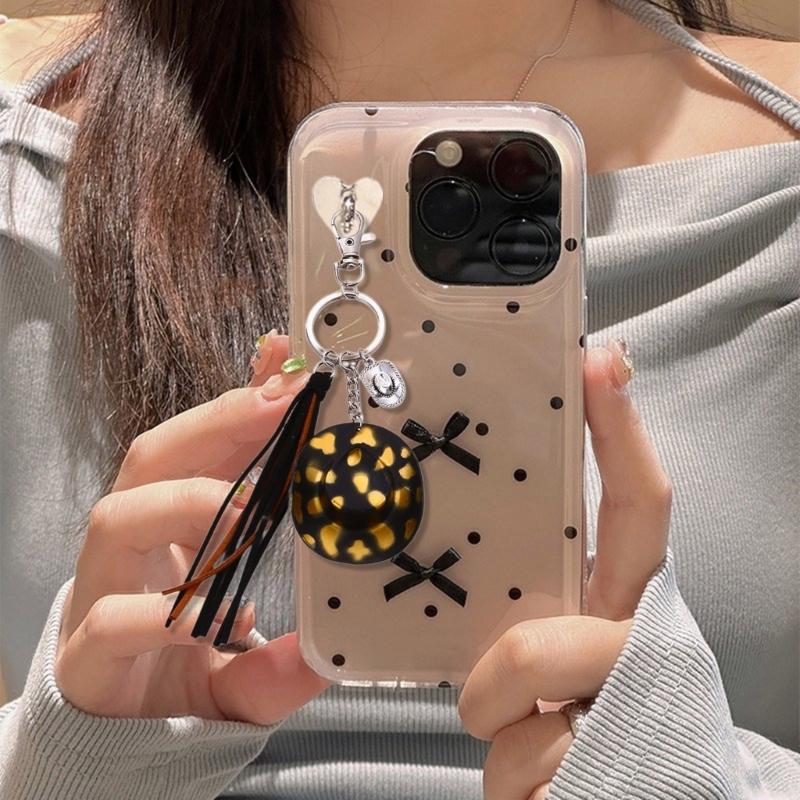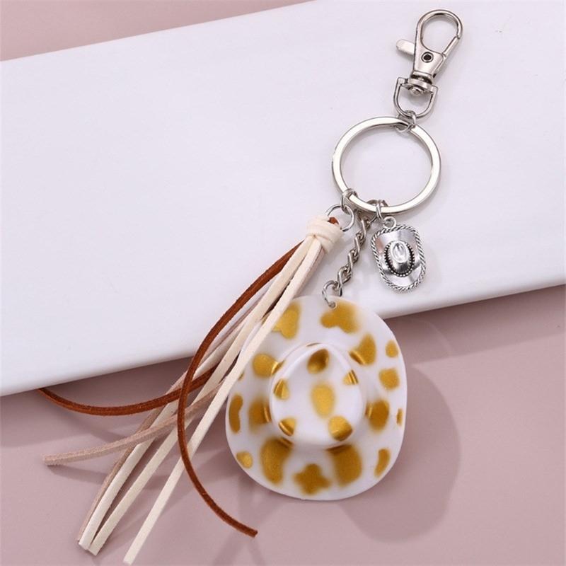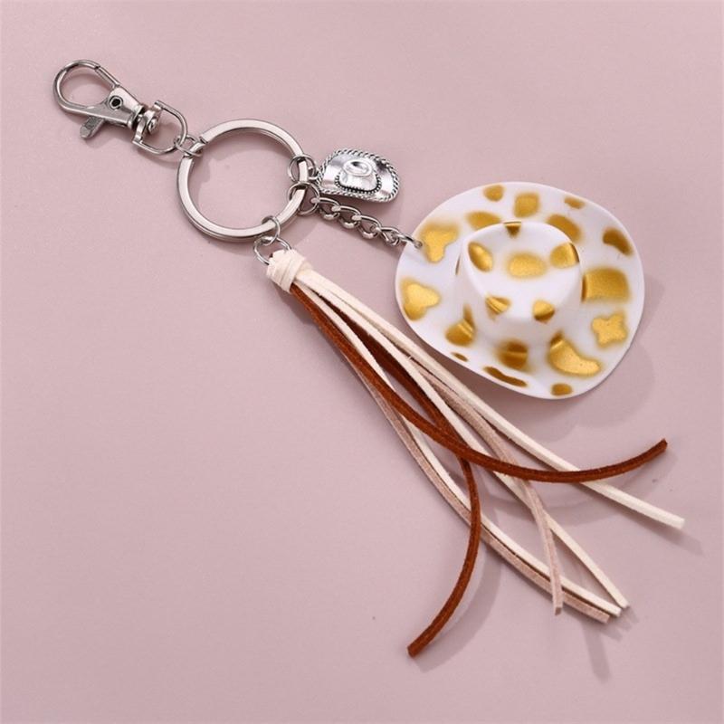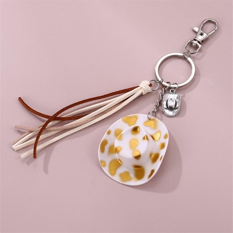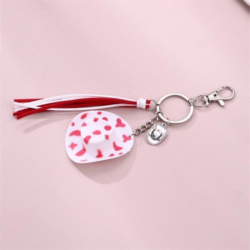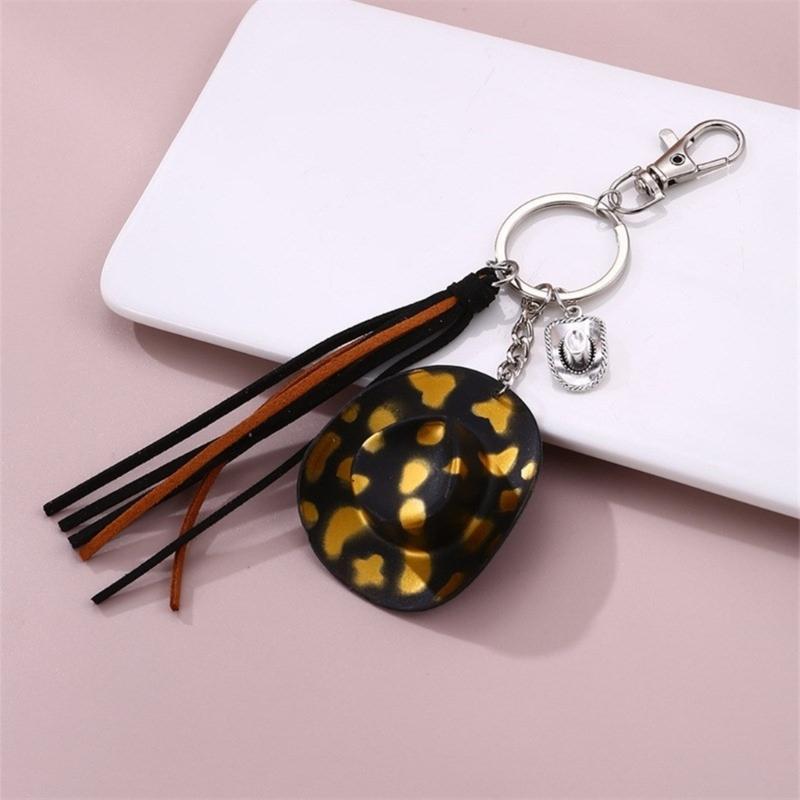 Cute Phone Pendant Fashionable Cow Print Hat Keychain Western Cowboy Hat Shaped Keyring Ornament Bag Charm Decoration