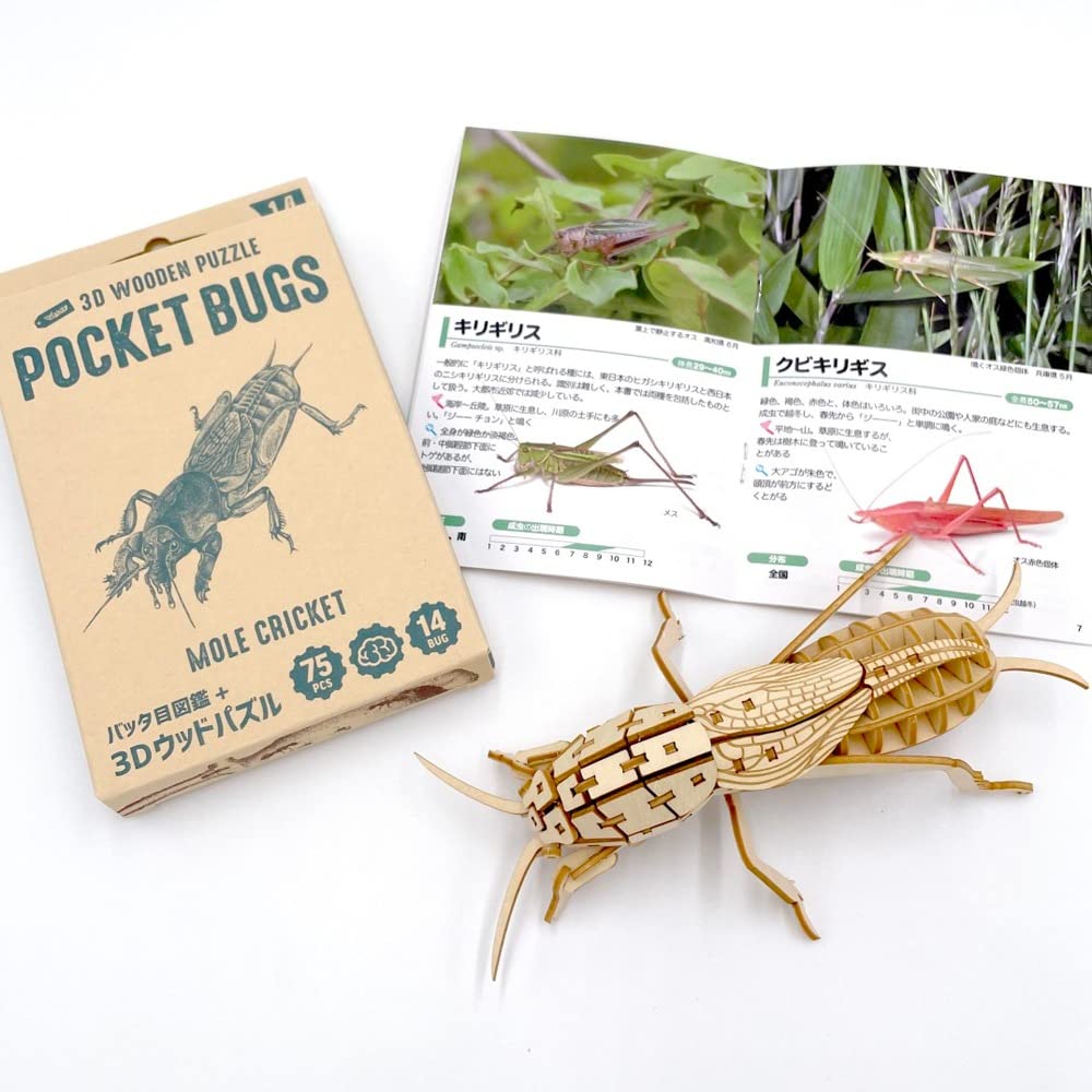 A wooden puzzle that can be enjoyed by children and adults alike. Recommended for those who want to start with a few wooden puzzle pieces. [14BUG Cricket] A familiar name from a nursery rhyme that everyone has sung at least once! It's actually an amphibious, highly functional insect. This kit is an all-in-one assembly kit that includes pre-cut wood sheets and sandpaper. No special tools are required, making it a great gift!