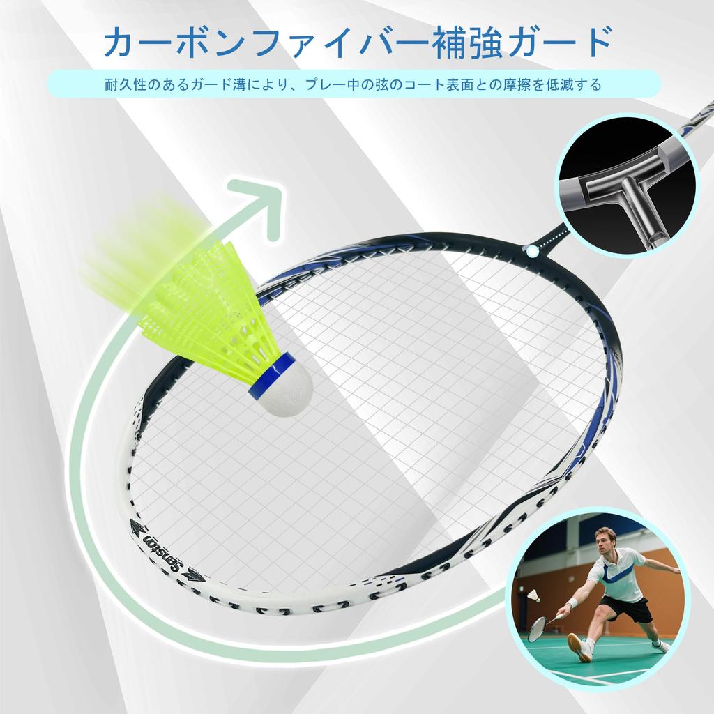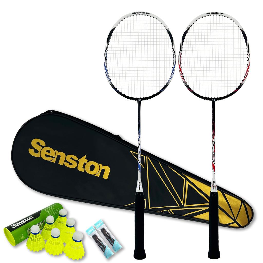Senston Badminton Carbon Alloy Badminton Racket and 6 Red and Blue Set, 2-Piece Shuttlecocks,