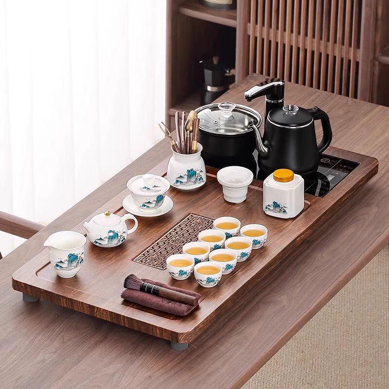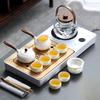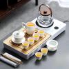 Jiakangming Ru Kiln Ceramic Tea Set with Auto-Heating Kettle & Wooden Tray