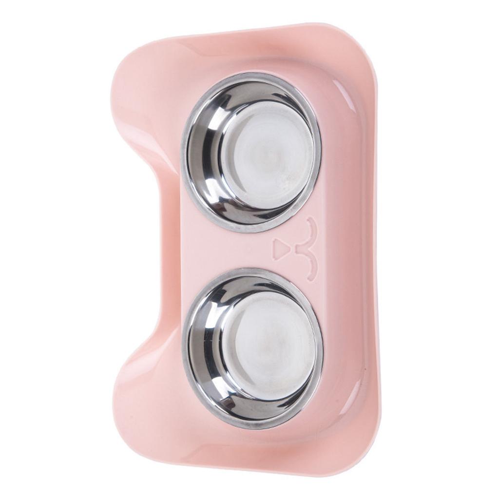 Pet Dog Bowls Stainless Steel Cute Shape Leak Proof Smooth Inner Easy Clean Double Dog Bowl for Cats Pink
