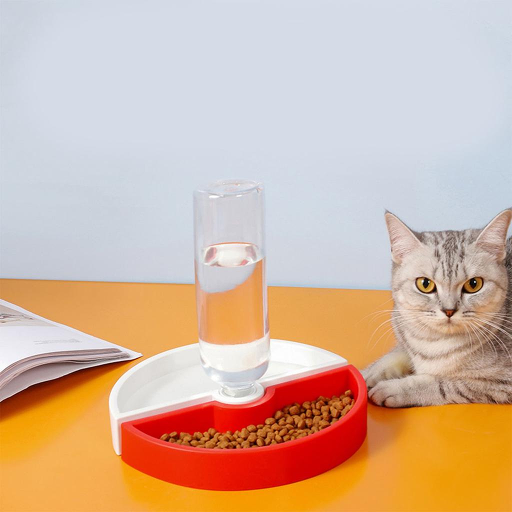 Миска для воды и корма для кошек, съемная, предотвращающая скольжение, большой вместимости, набор мисок для домашних животных с бутылкой-поилкой для помещений, красная/белая