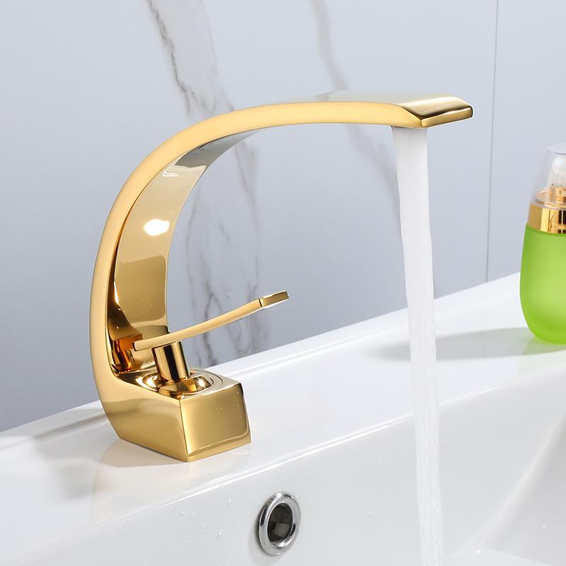 Смеситель для раковины, современный смеситель для ванной комнаты, черный/золотой, смеситель для раковины с одной ручкой, с горячей и холодной водой, водопадный кран