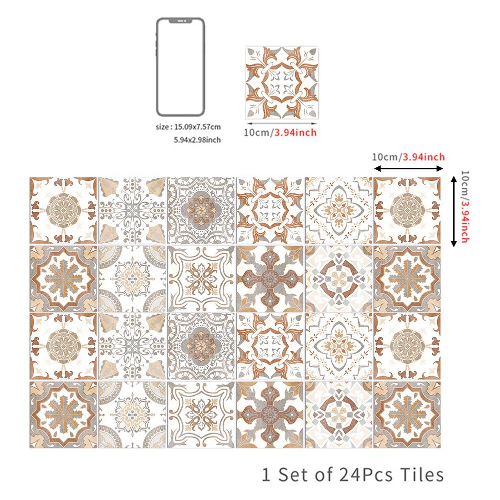 24 штуки глянцевые самоклеящиеся наклейки на плитку с ретро-узором для кухни и ванной комнаты, съемная водонепроницаемая наклейка на стену