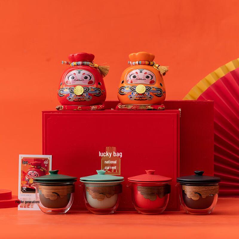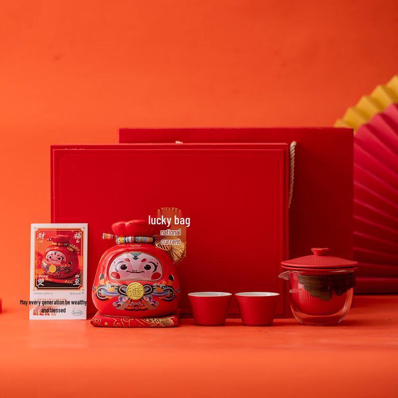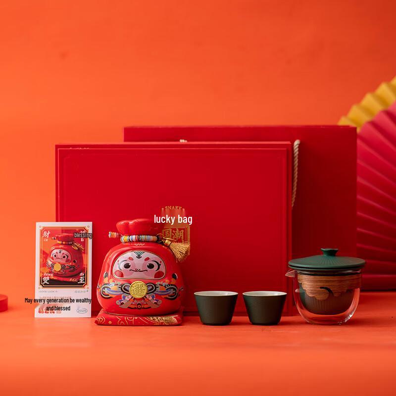 Haofeng 2025 Year of the Snake Lucky Bag Piggy Bank & Tea Set Gift Box