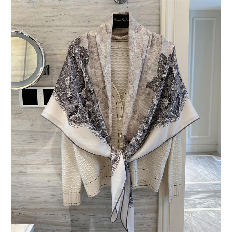 NINA SOLOR Romantic Lace Silk Wool Square Scarf