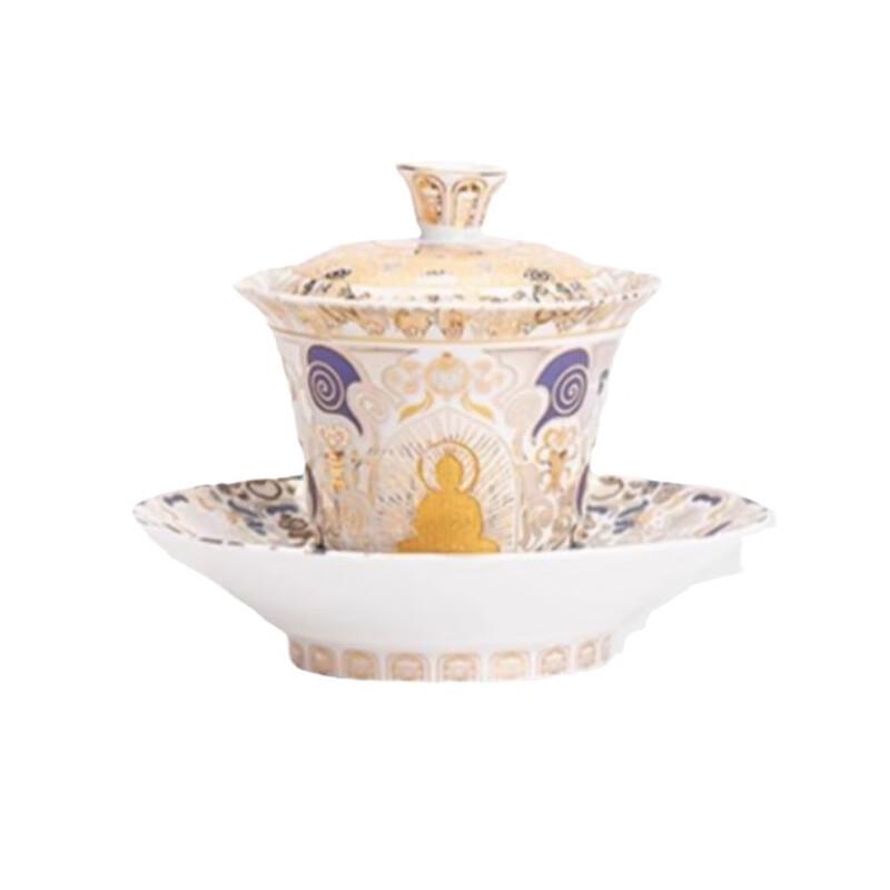 Dunhuang Style White Thangka Gaiwan Kung Fu Tea Set