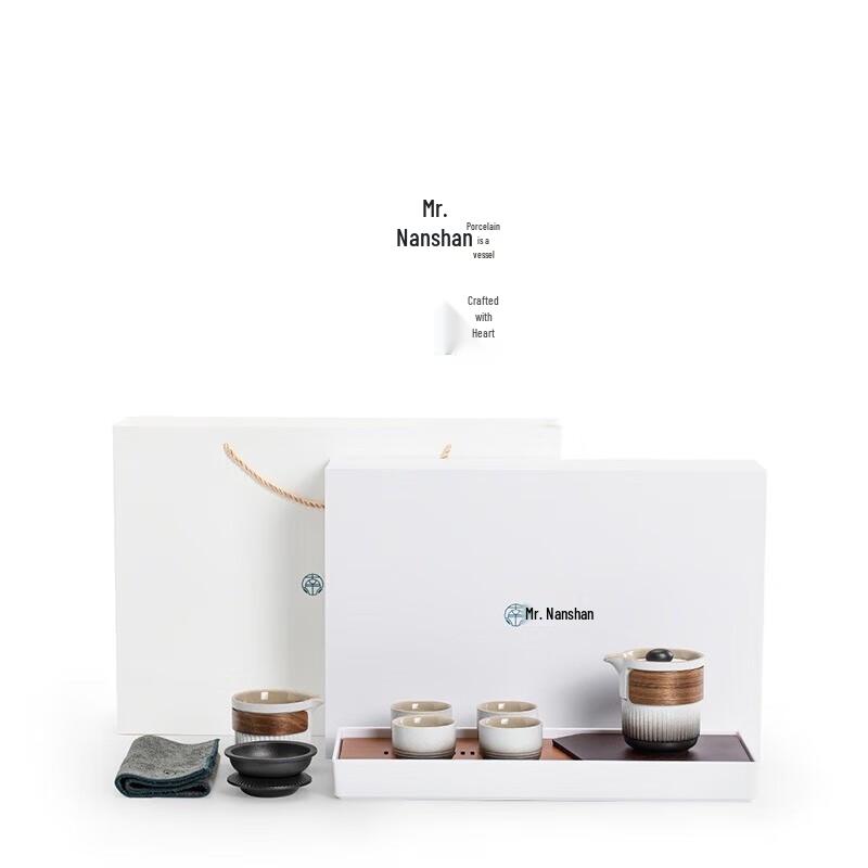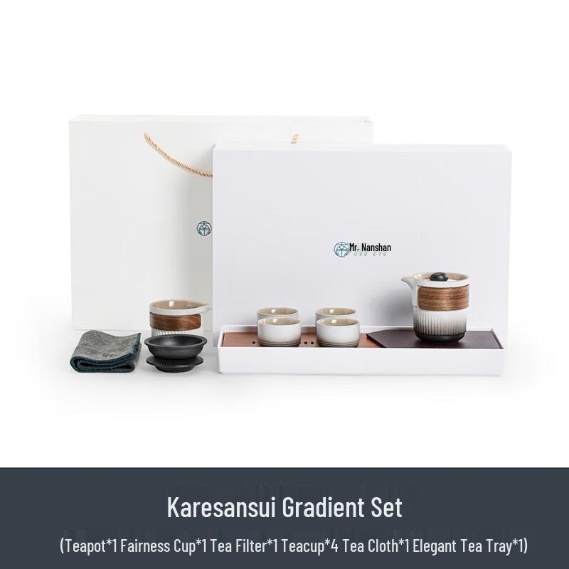 Japanese Dry Landscape Ceramic Tea Set with Elegant Tray
