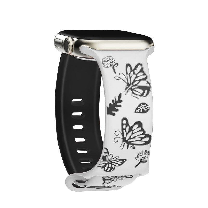 Силиконовый ремешок с рельефной пряжкой-бабочкой для Apple Watch Series 10/9/8/7/Ultra 2/SE 2