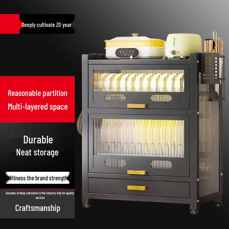 Premium Black 2-Tier Countertop Dish Storage Cabinet with Lid