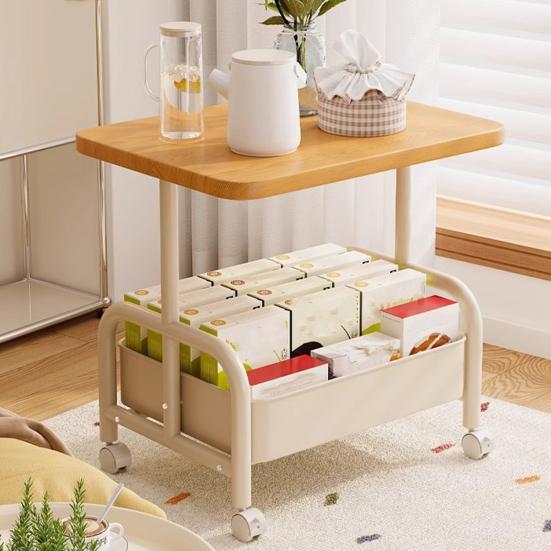 Универсальное использование в различных сценариях: Этот журнальный столик на колесиках, разработанный с учетом мобильности, можно удобно расположить рядом с диванами, кроватями или задвинуть в углы.. Его приспособляемость делает его идеальным в качестве приставного столика или полки, особенно подходящим для компактных квартир и многофункциональных жилых зон.