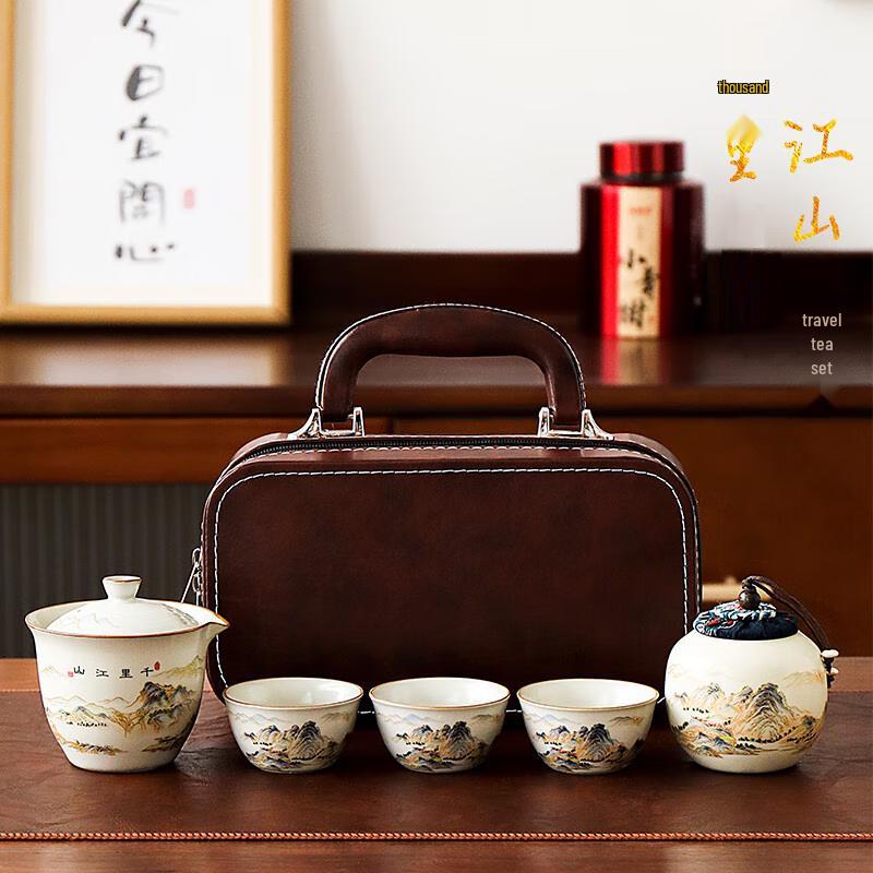 Qianli Jiangshan Portable Ceramic Travel Tea Set