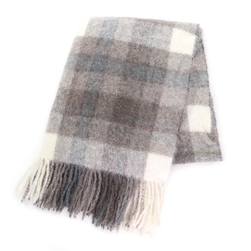 Отличный шарф Brunello Cucinelli Большой клетчатый шарф с бахромой Серый белый альпака Женский Б/у