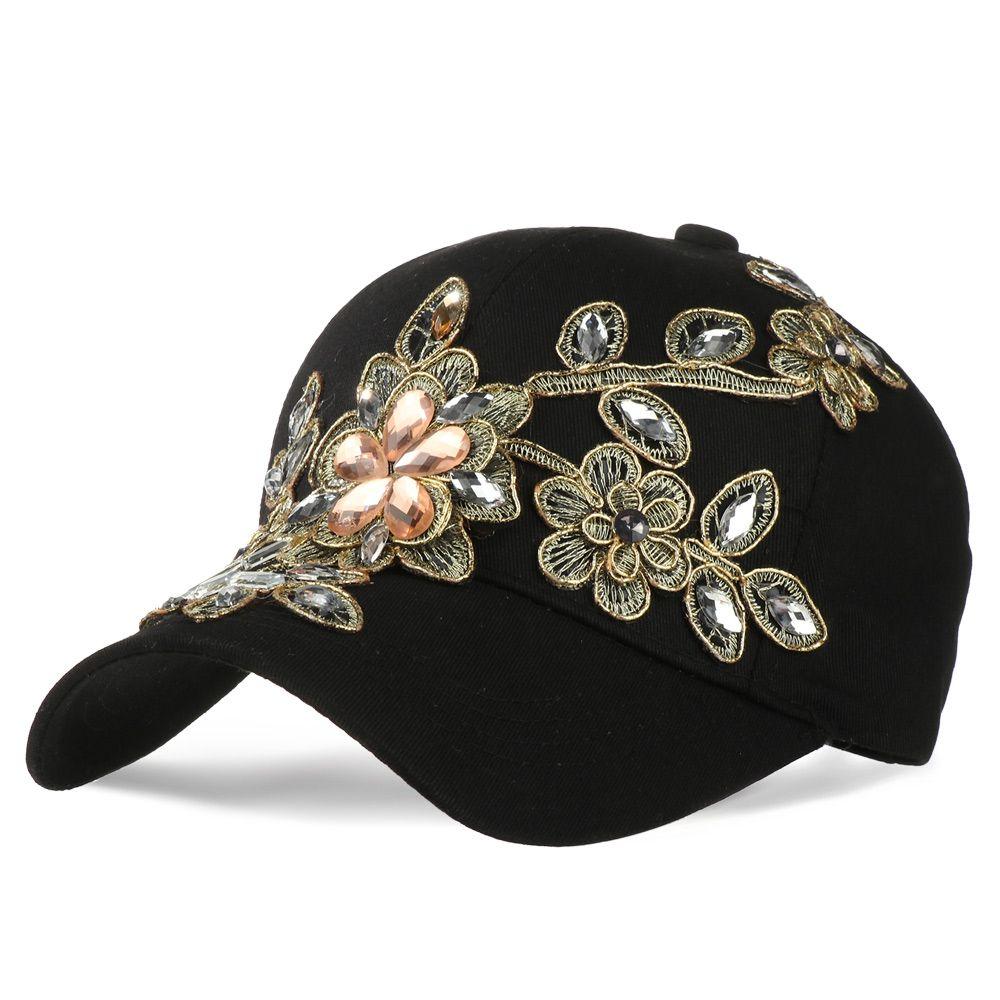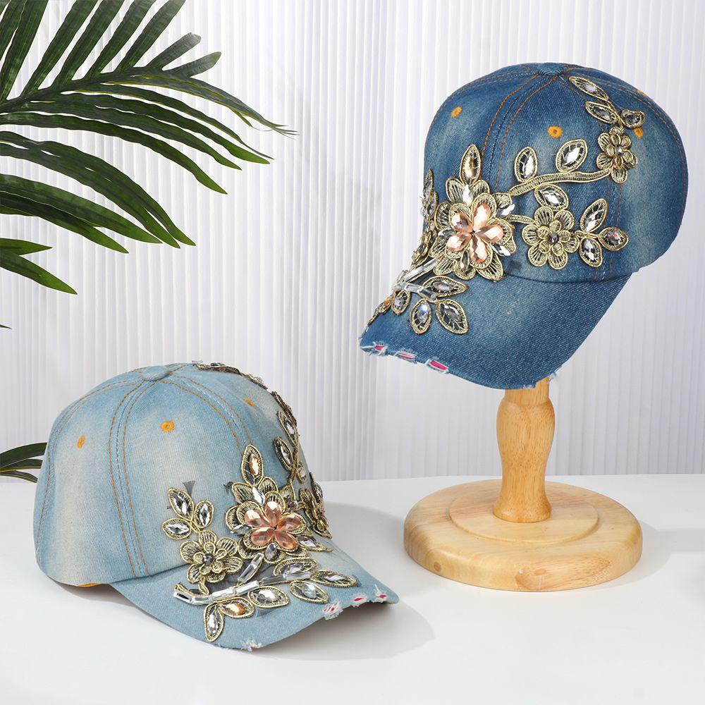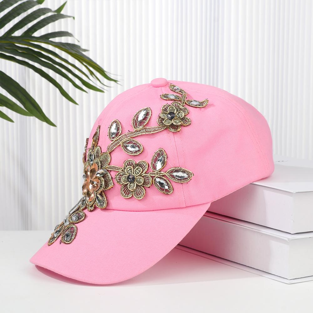 Rhinestone Women's Hat Sun Hat Golden Flowers Diamond-studded Baseball Caps Cowboy Hat Cap