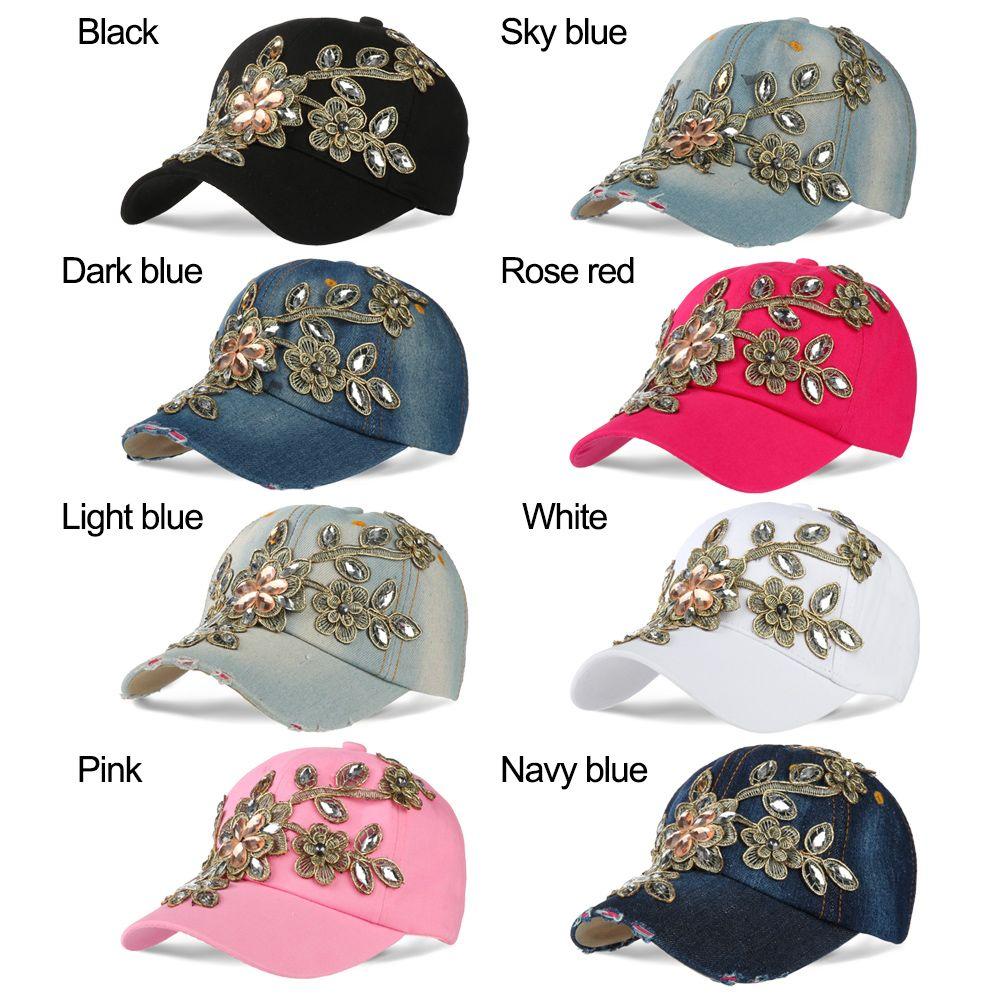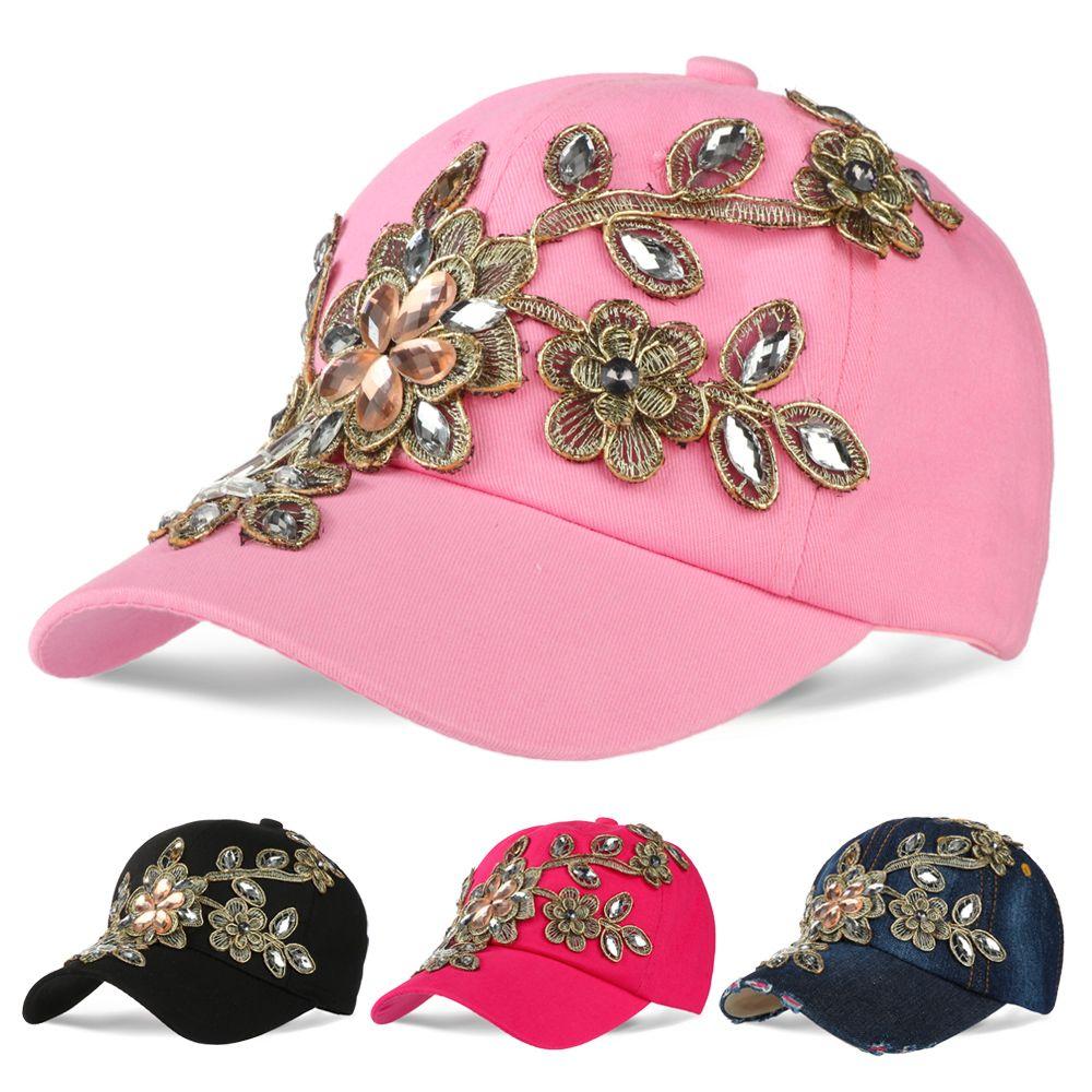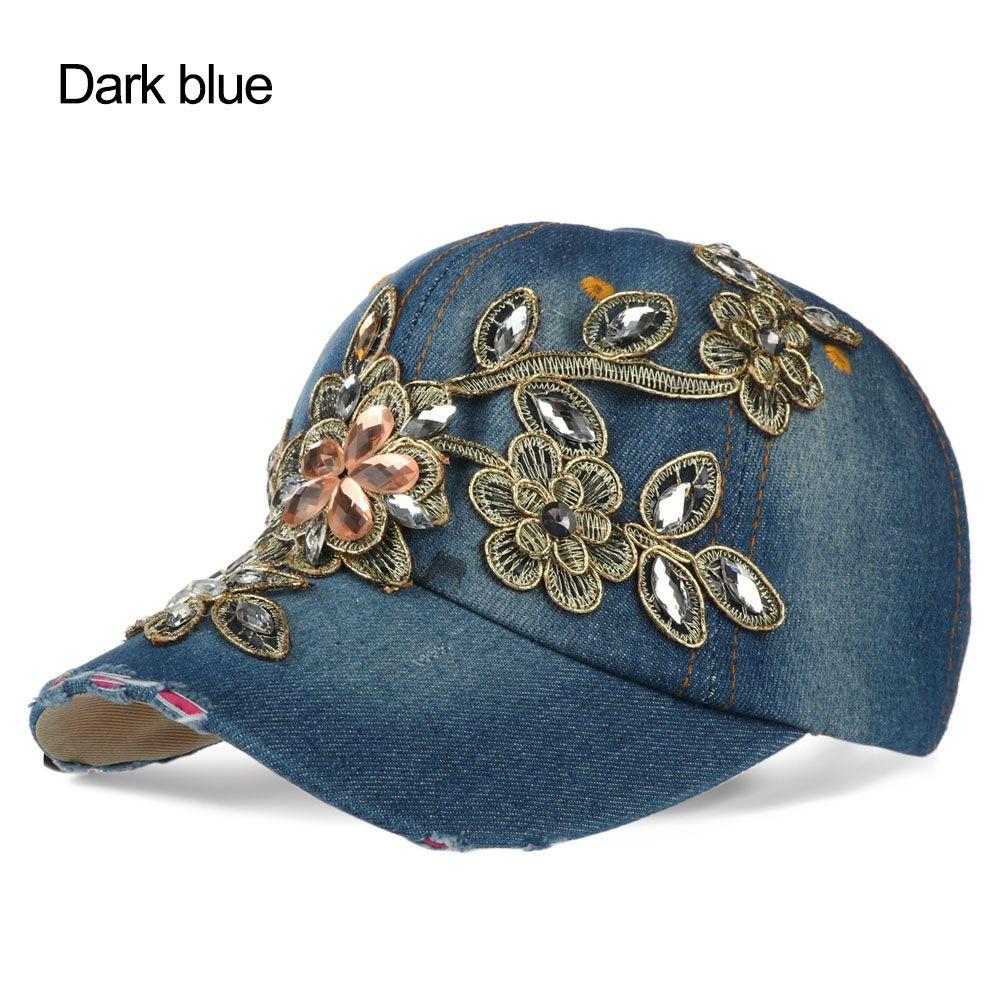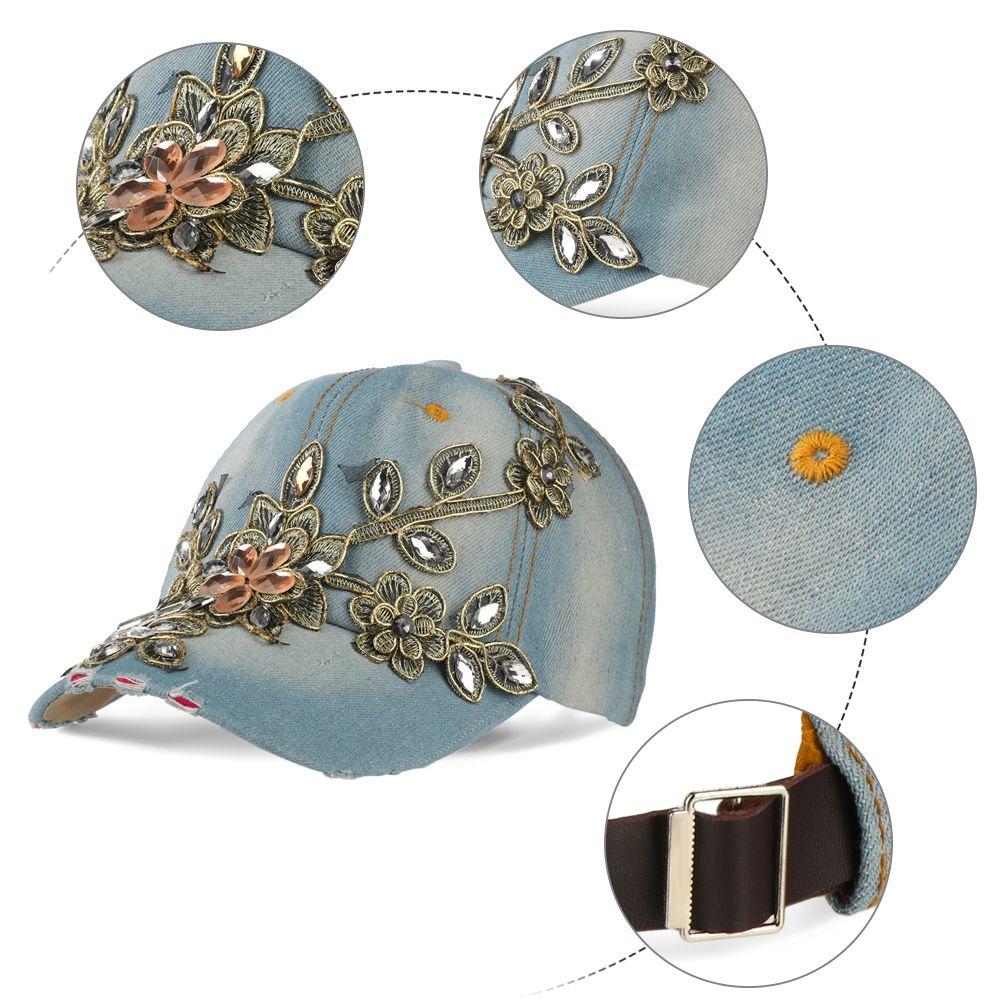 Rhinestone Women's Hat Sun Hat Golden Flowers Diamond-studded Baseball Caps Cowboy Hat Cap