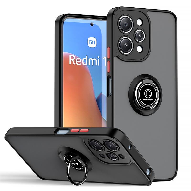 Матовый бронированный жесткий ПК чехол для Xiaomi Redmi 12 4G 5G Автомобильный магнитный держатель Кольцо Подставка Чехол для телефона для Redmi12 Ударопрочный Funda