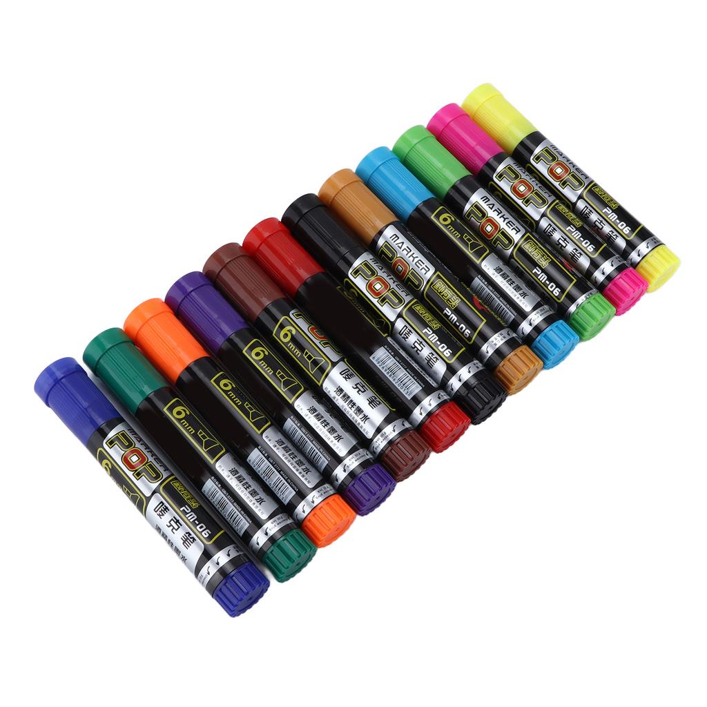 12Pcs Permanent Markers Dry Quickly Waterproof Bright Colors Fade Resistant Marker Pen Set for Painting Graffiti