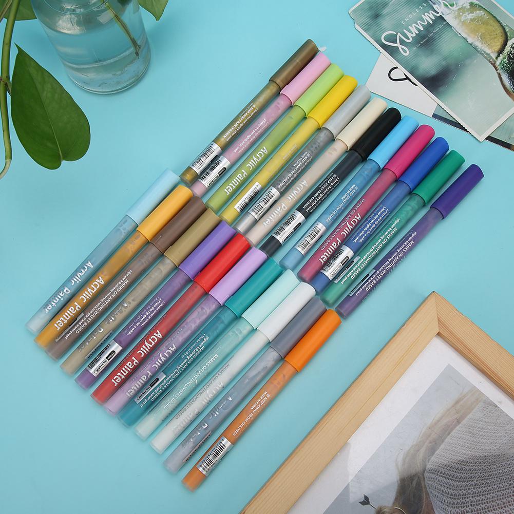 Coloured Acrylic Marker Pen Kit Non Toxic Water Based Painting Drawing Tool(24 Colors )