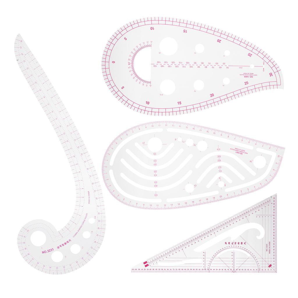 4Pcs Curve Ruler MultiFunction Vary Form Sewing Grading Proofing Plastic Clothing Design Tool — купить товар онлайн с бесплатной доставкой по всему миру!