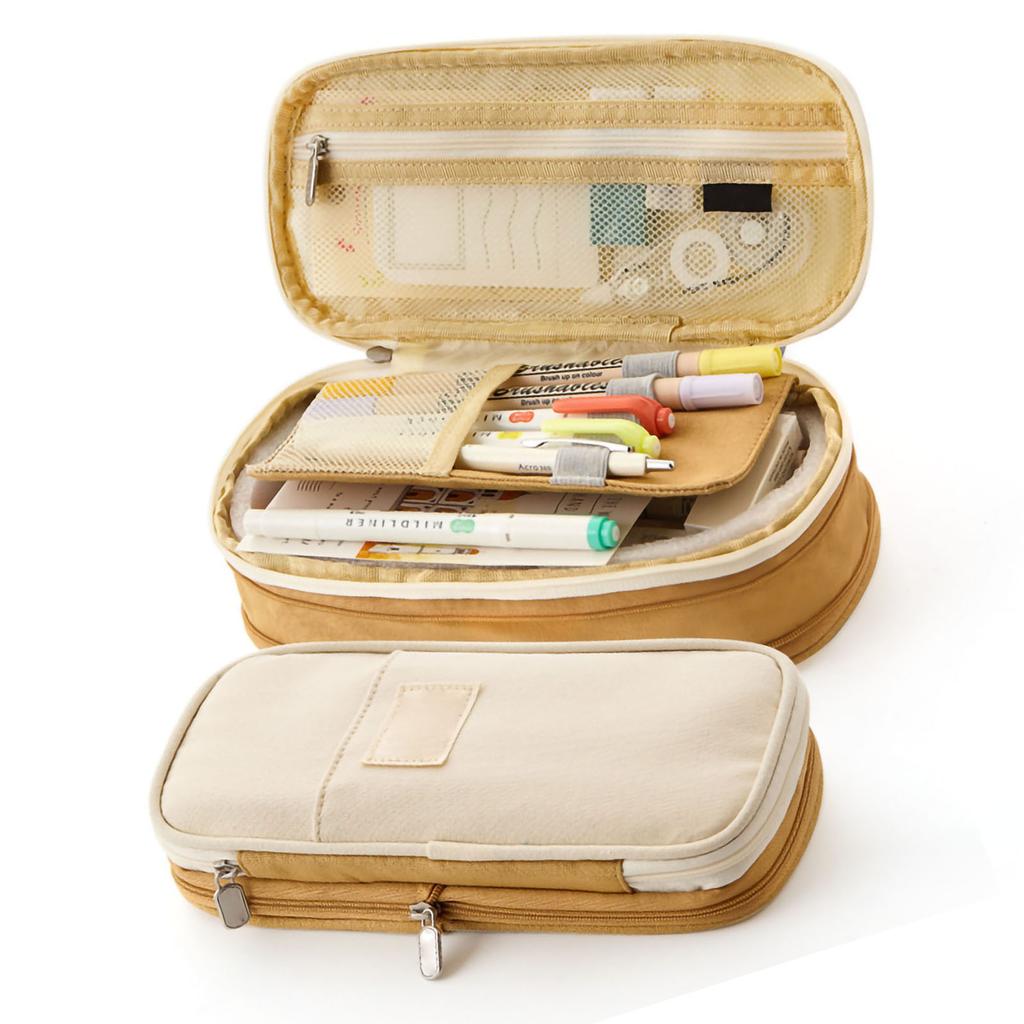 Канцелярская сумка большой вместимости для студентов, макаронная цветовая гамма, холщовая сумка для карандашей, пенал, светло-хаки, бежевый