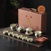 Artisanal Wood Ash Glaze Kung Fu Tea Set with Silver Tray