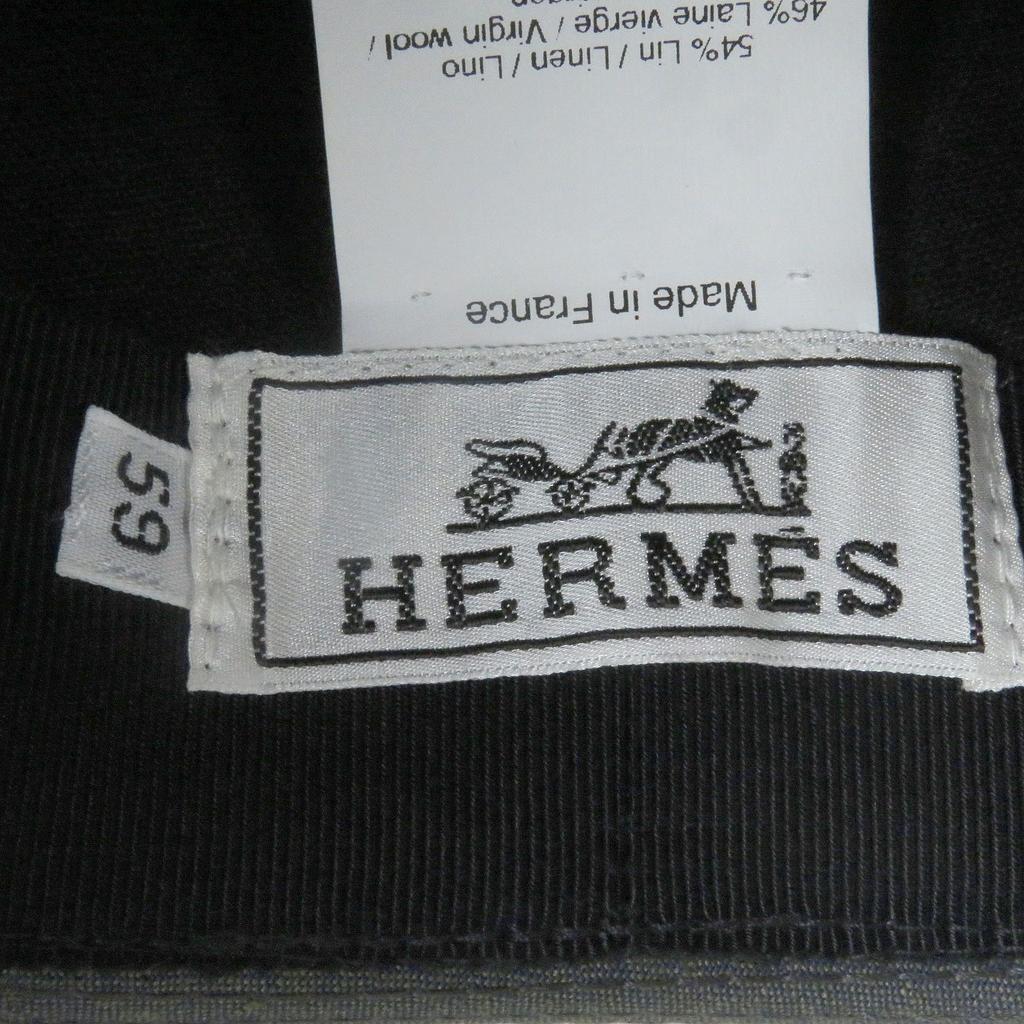 Excellent HERMES hat Linen Blend H Logo Embroidered Fedora Blue linen mens Used