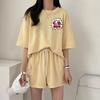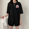 Женский летний повседневный спортивный свободный топ с коротким рукавом и шорты с принтом букв хлопковый комплект одежды из двух предметов