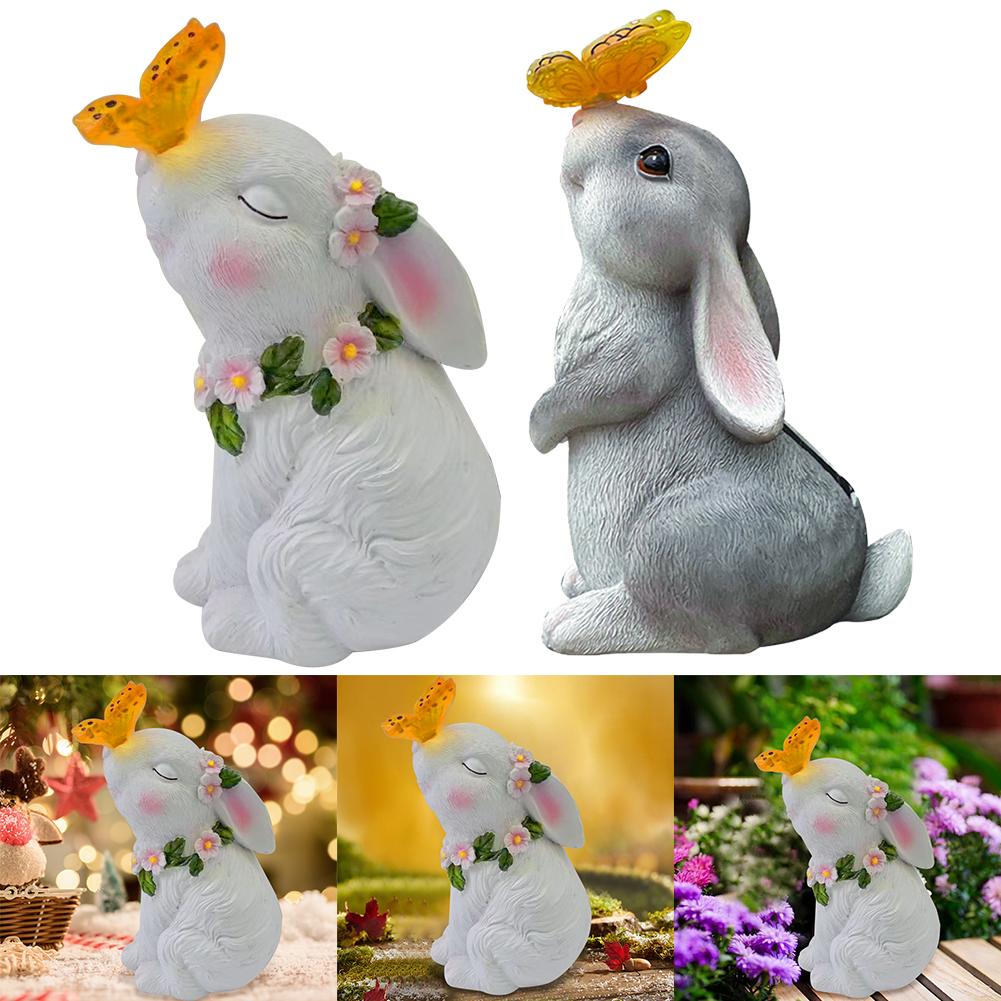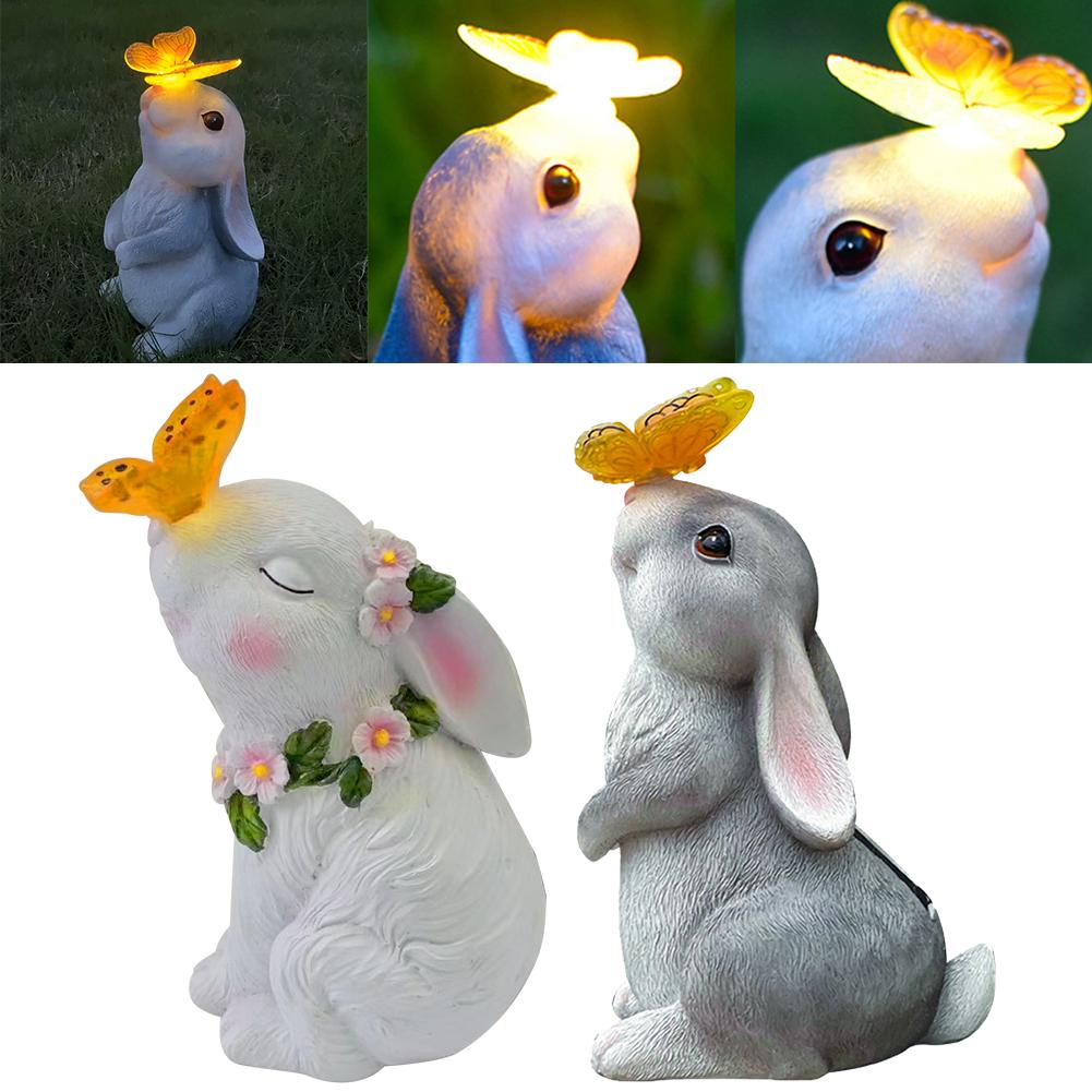 Solar Rabbit Light Solar Bunny Decorative Light Waterproof Rabbits Sculptures Light Resin Cartoon for Patio Lawn Courtyard