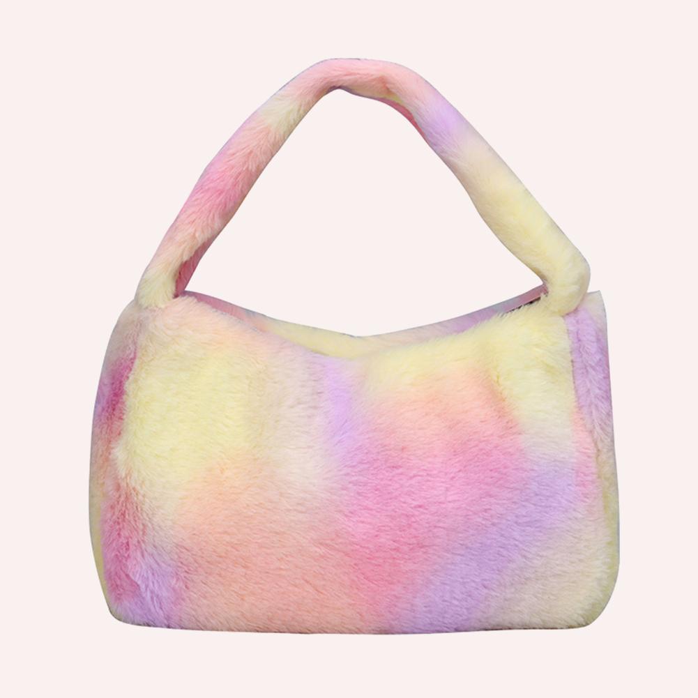 Радужная сумка через плечо Простая модная пушистая сумка Большая вместимость Пушистые сумки-тоут Красочная сумка с верхней ручкой для осени-зимы