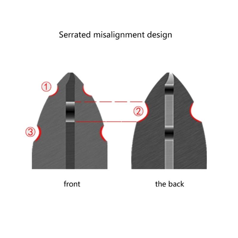 This drill bit features a unique serrated offset that enhances cutting efficiency and reduces resistance, making it for various materials including wood, metal, and plastic.