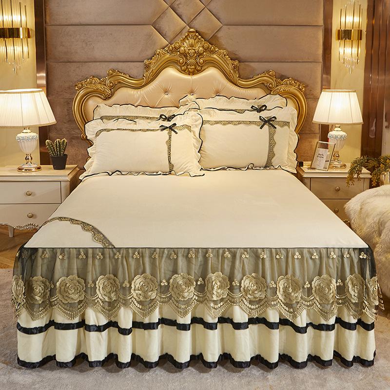 Европейская бархатная юбка-кровать с кристаллами, цельная осенне-зимняя утолщенная кружевная покрывала с рюшами, 1,5 м, 1,8 м, нескользящая простыня