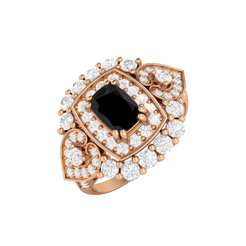 6X4MM Cushion Black Spinel Gemstone 925 Sterling Silver Rose Plated Solitaire Halo Women Engagement Ring