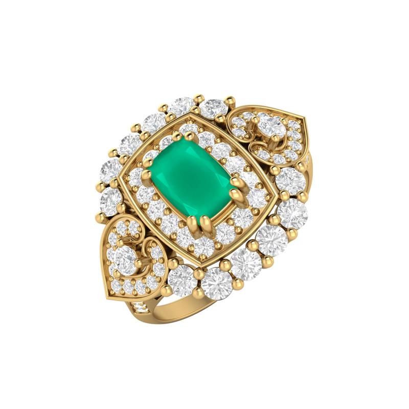 6X4MM Cushion Green Onyx Gemstone 925 Sterling Silver Gold Plated Solitaire Halo Women Engagement Ring