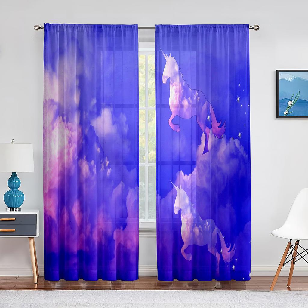 Фэнтези Фиолетовый Облако Единороги Тюлевые Шторы-Вуали Спальня Отель Домашний Декор Прозрачные Шторы для Гостиной Шифоновая Печатная Драпировка