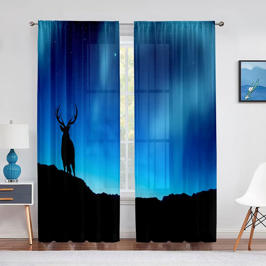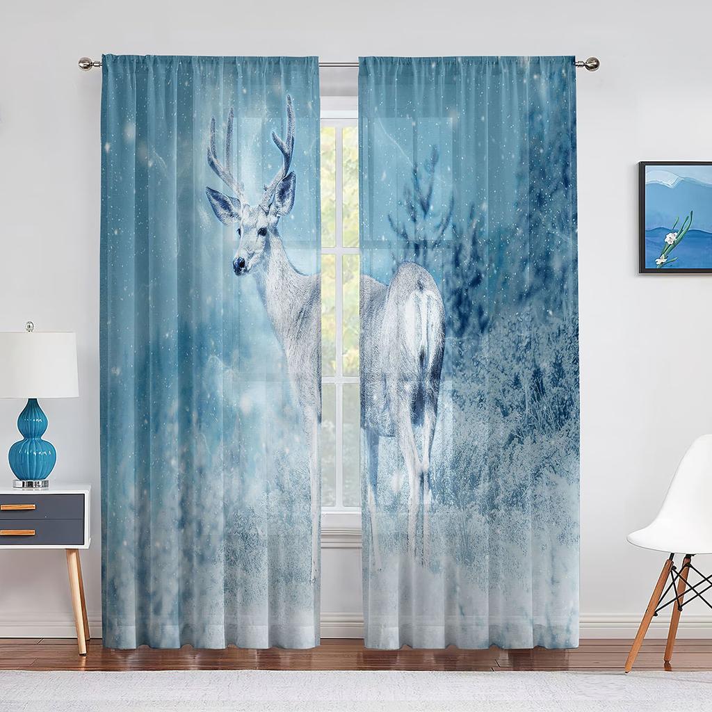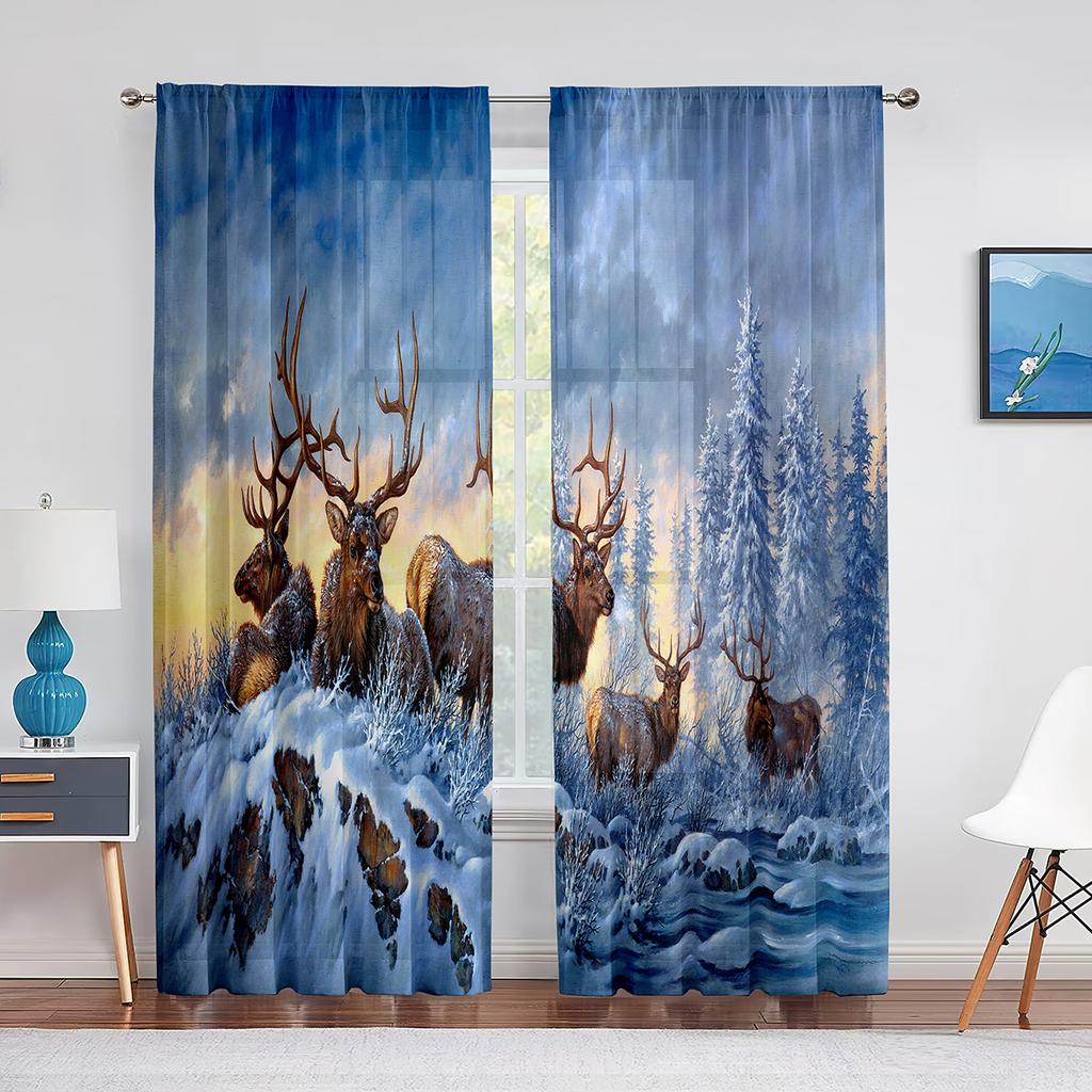Зимние прозрачные шторы с изображением оленей, лосей, диких животных, белый снежный лес, прозрачные шторы для гостиной, спальни, вуаль, тюлевые занавески, шторы