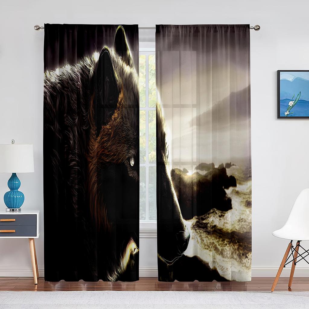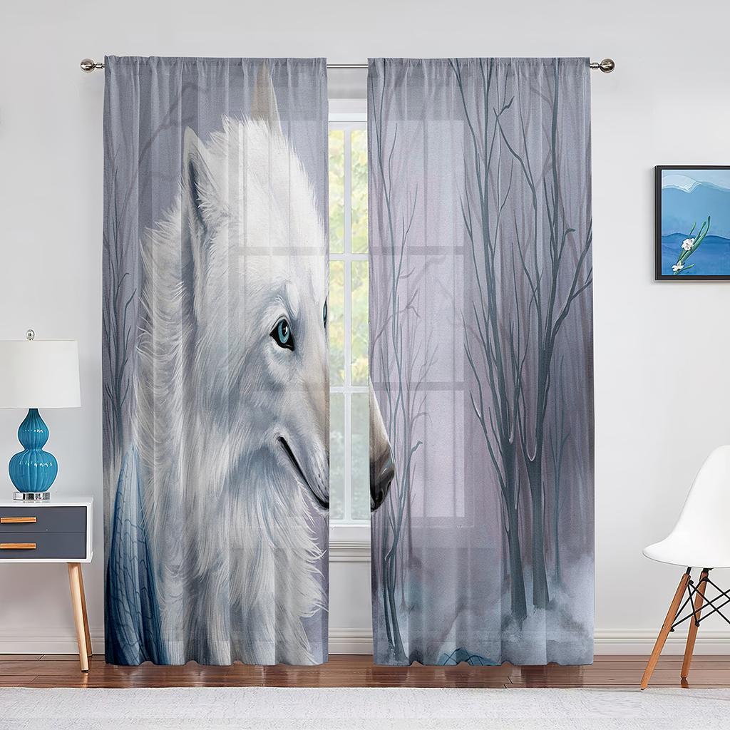 Волк Прозрачная Вуаль Занавес Ледяной Огонь Волки смотрят друг на друга Оконные Тюлевые Шторы для гостиной Спальня Кухня Декор Шторы