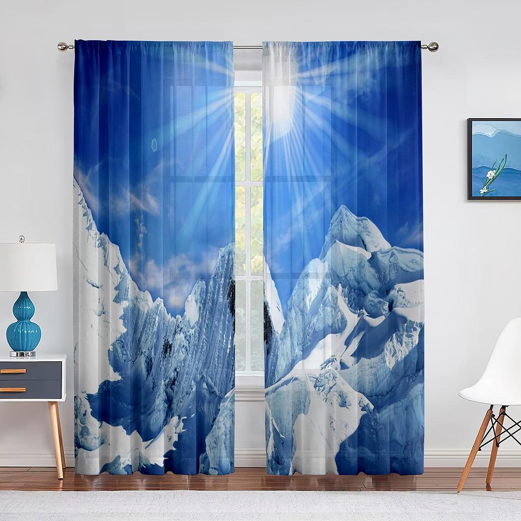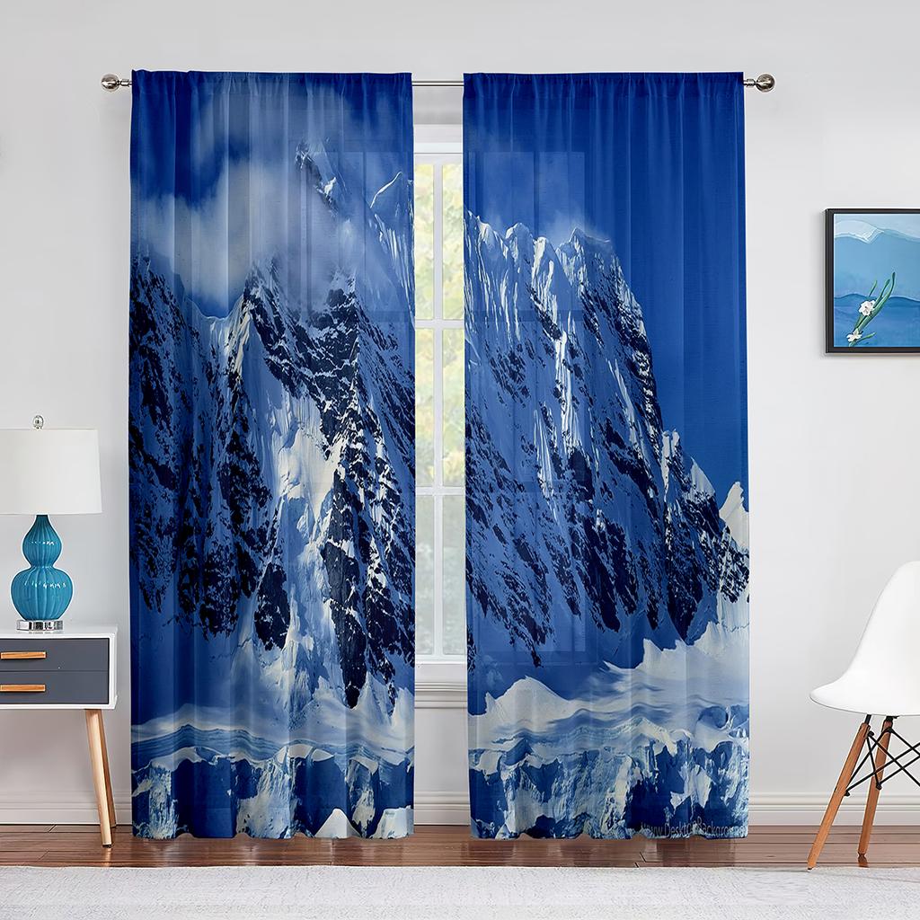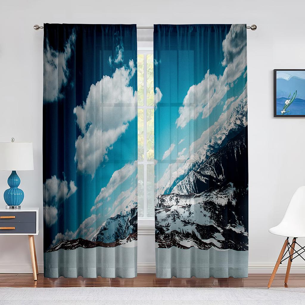 Горный Пейзаж Прозрачная Вуаль Шторы Снежный Пик Озера Природа Пейзажи Окна Тюлевые Шторы для Гостиной Современный Декор Спальни