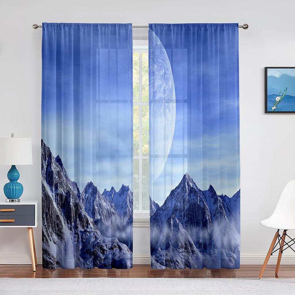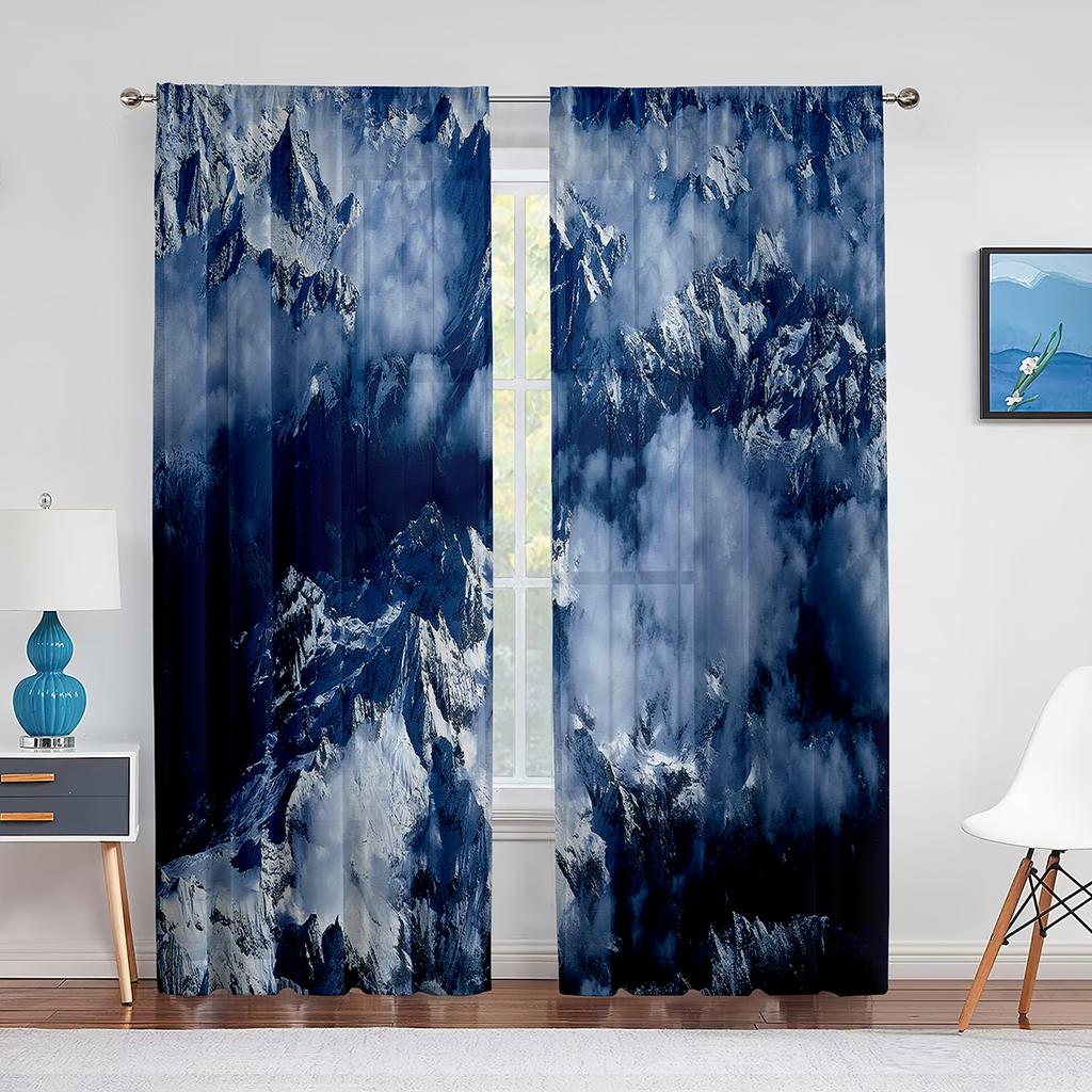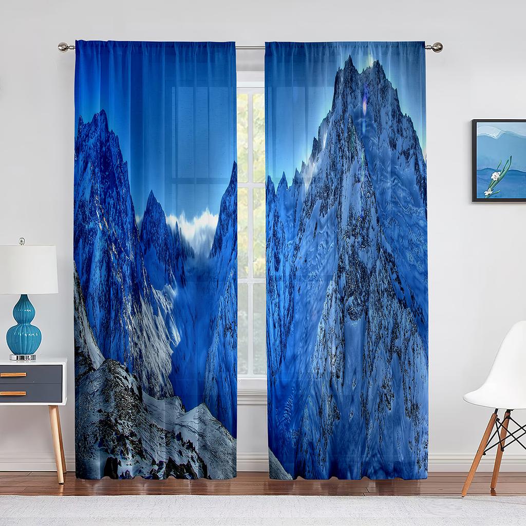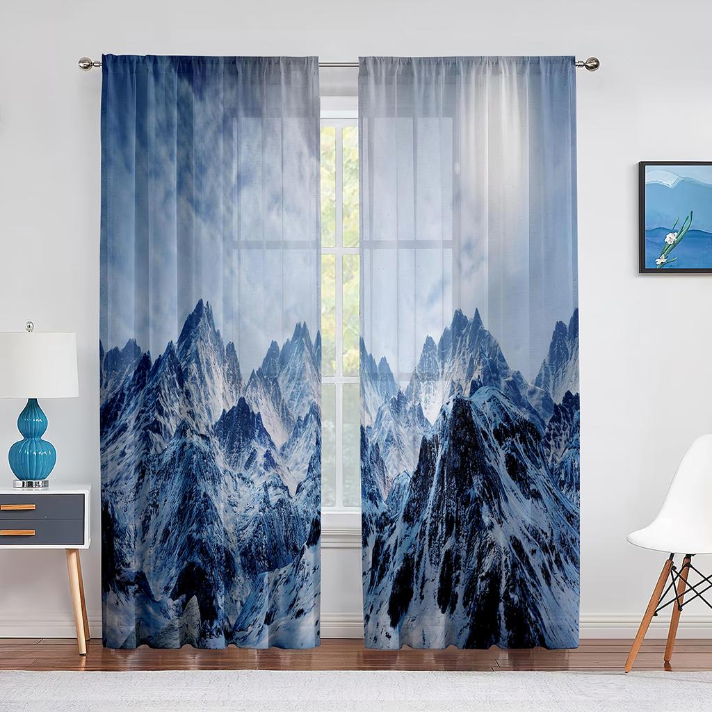 Горный Пейзаж Прозрачная Вуаль Шторы Снежный Пик Озера Природа Пейзажи Окна Тюлевые Шторы для Гостиной Современный Декор Спальни