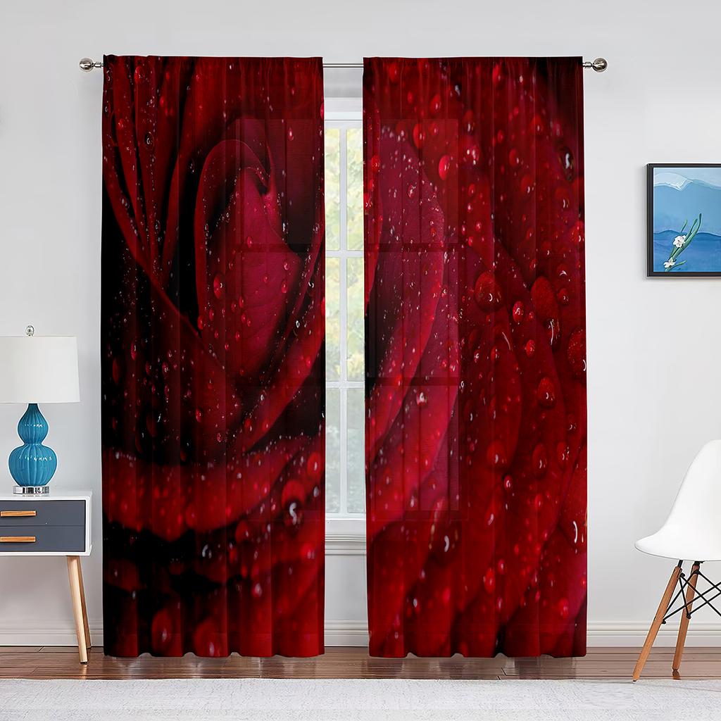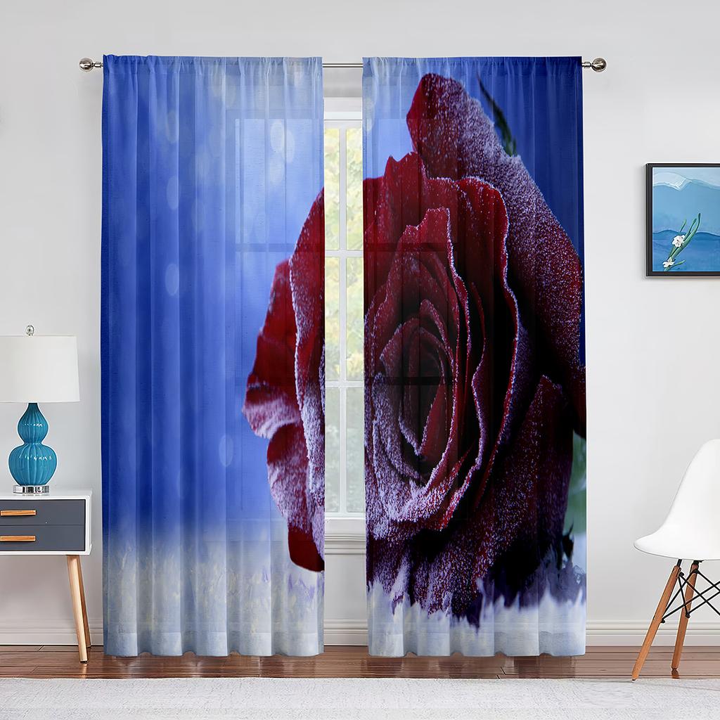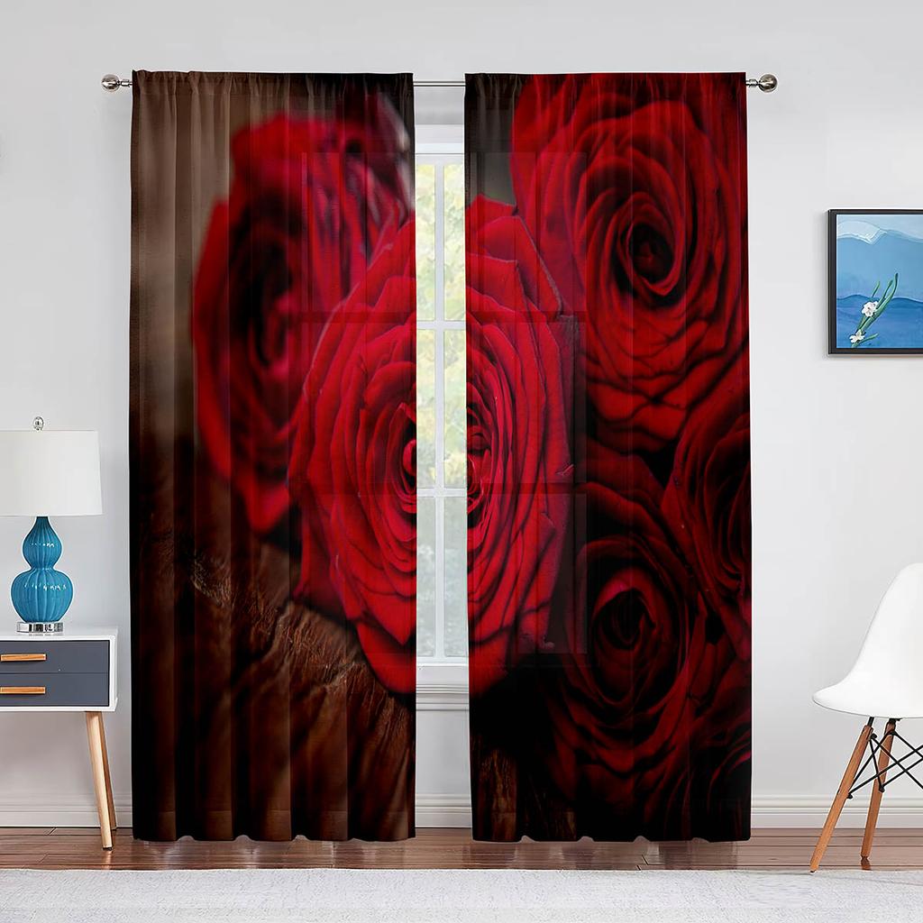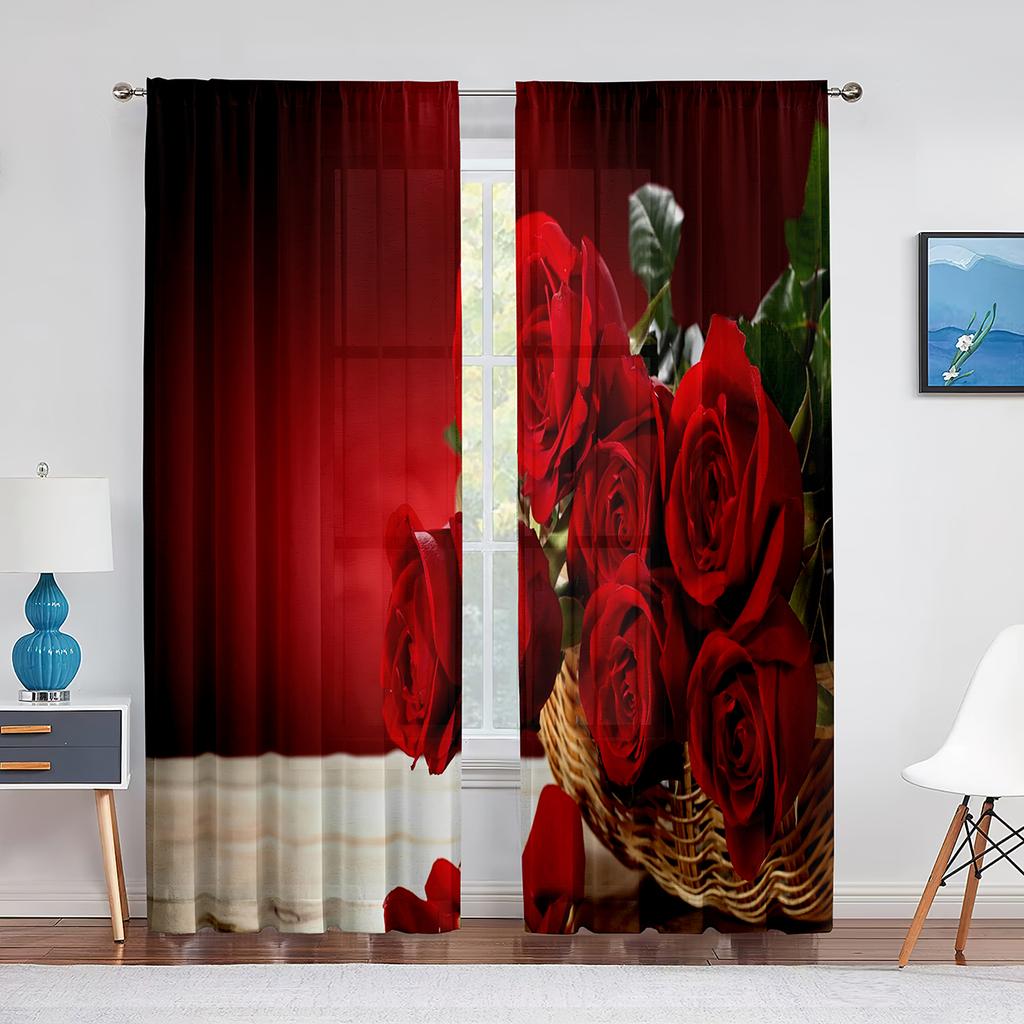 Прозрачные оконные шторы с цветущей красной розой для спальни, гостиной, ко дню Святого Валентина, романтические цветочные шифоновые тюлевые занавески из вуали